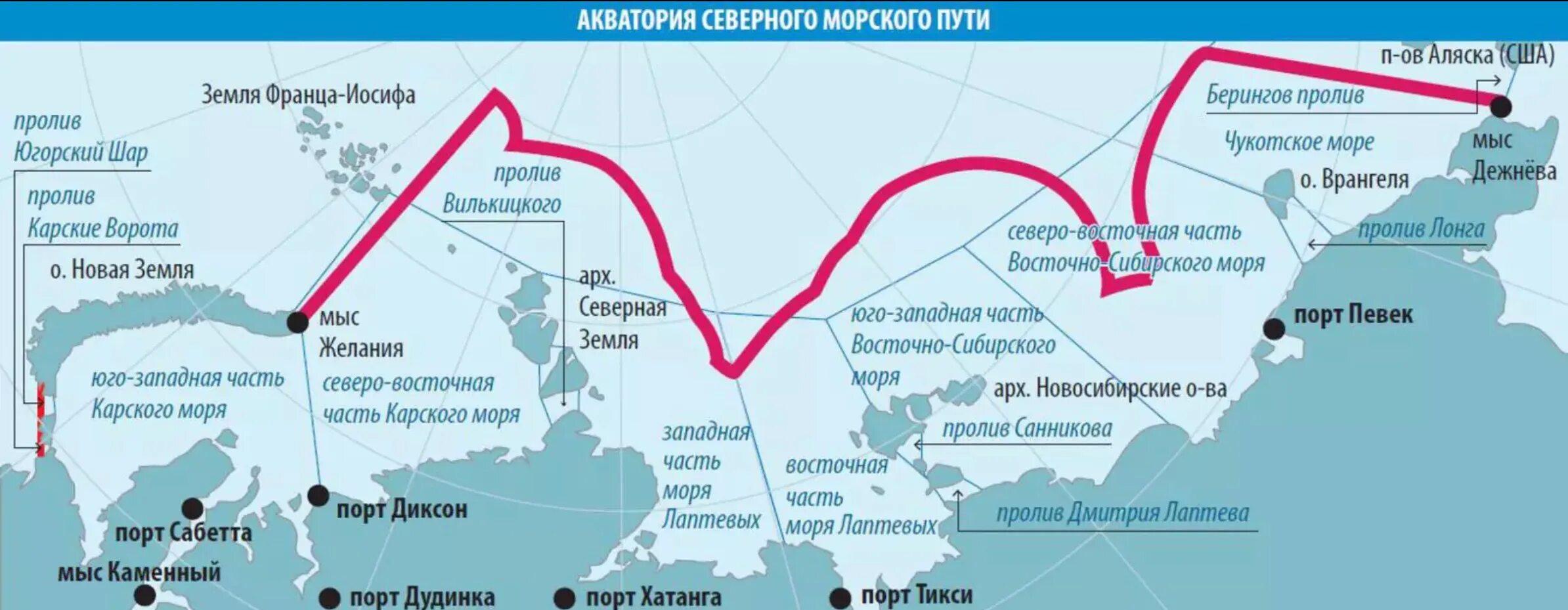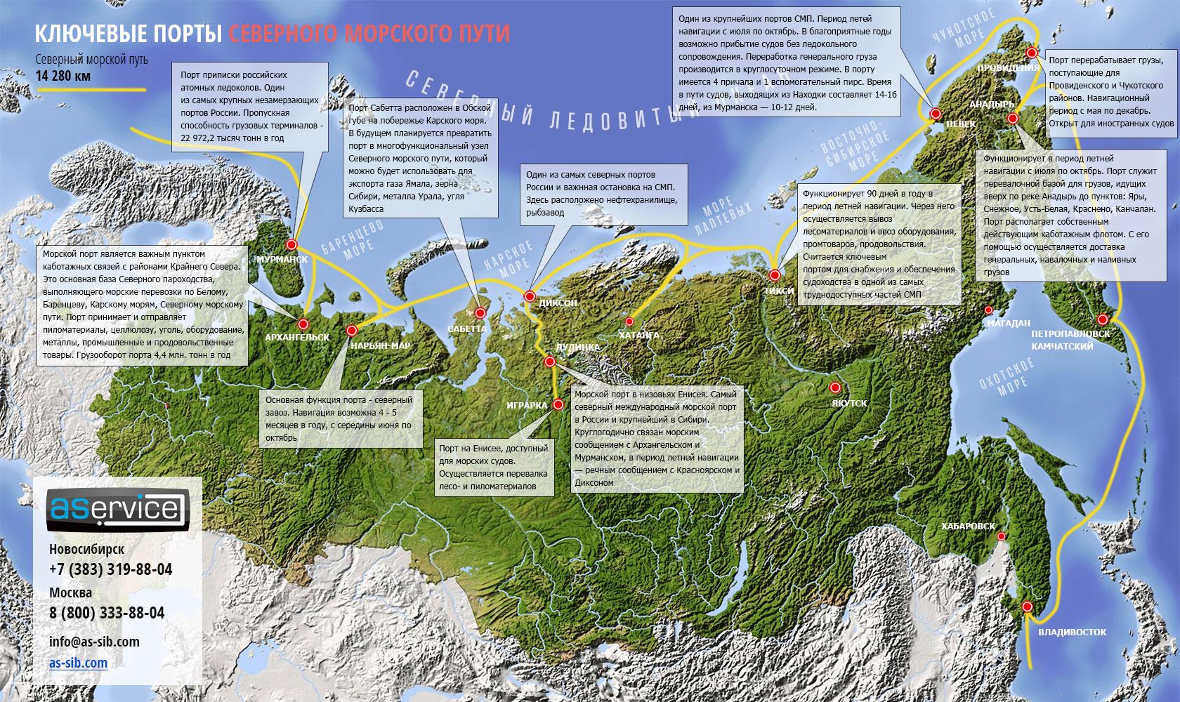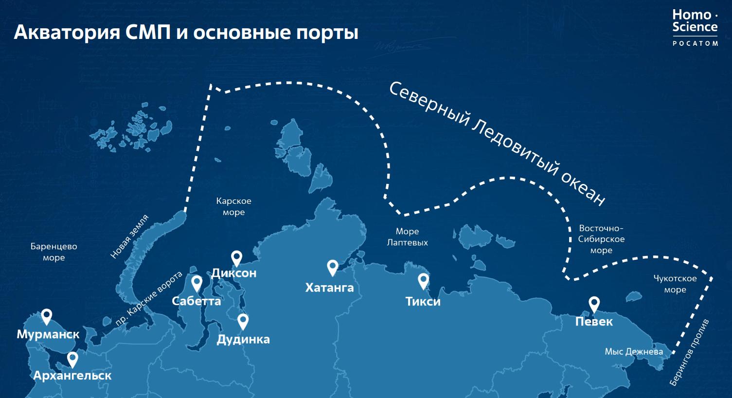 Северный морской путь на карте России Порты