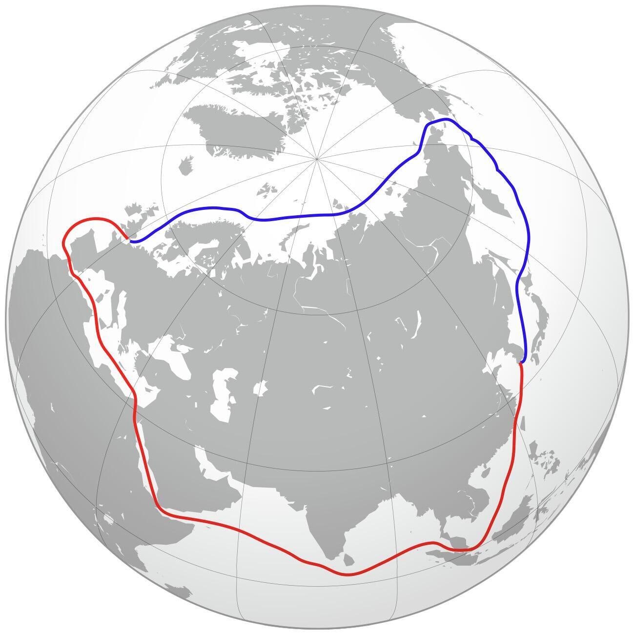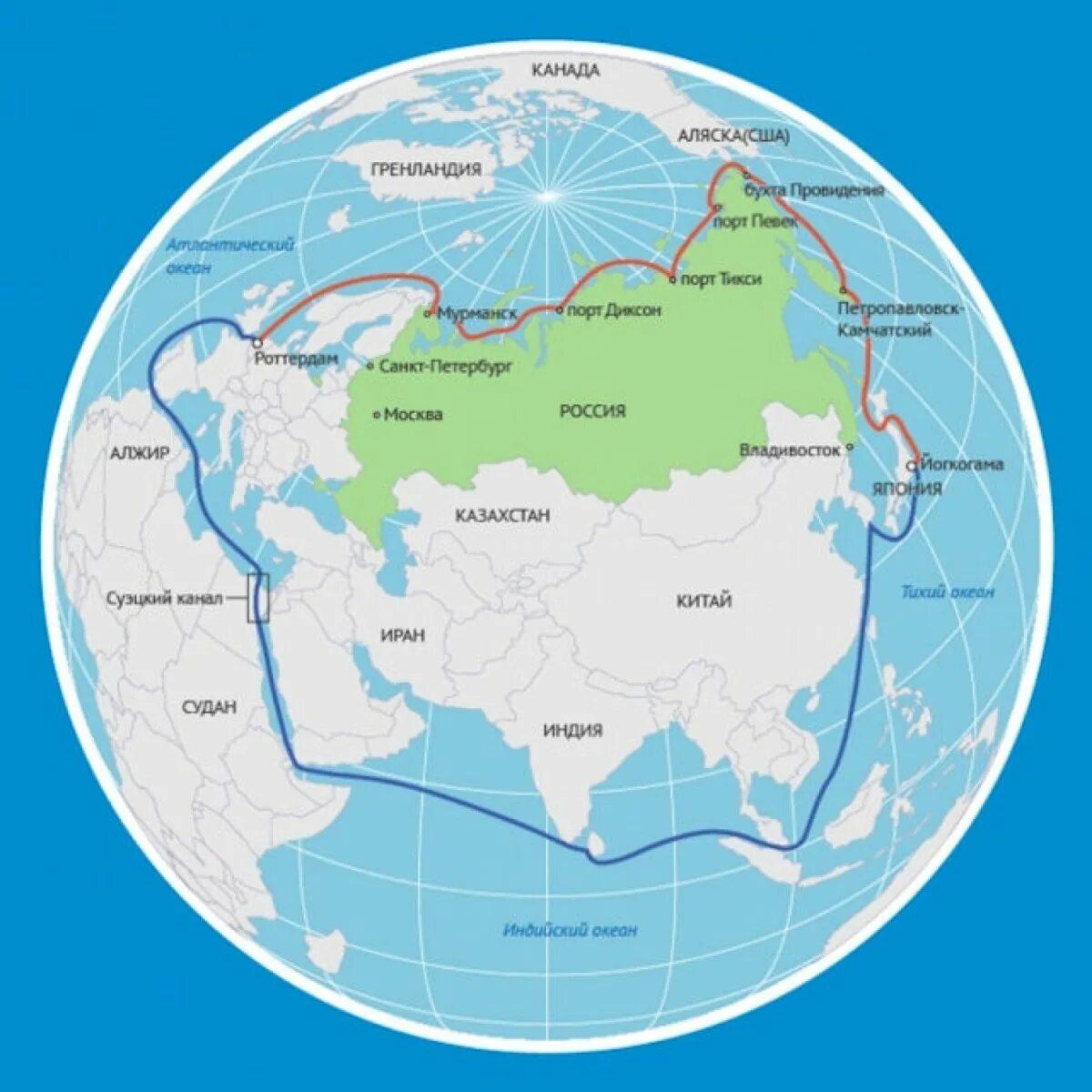 Путь через Суэцкий канал и Северный морской путь