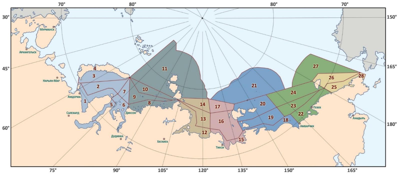Схема расположения районов акватории Северного морского пути