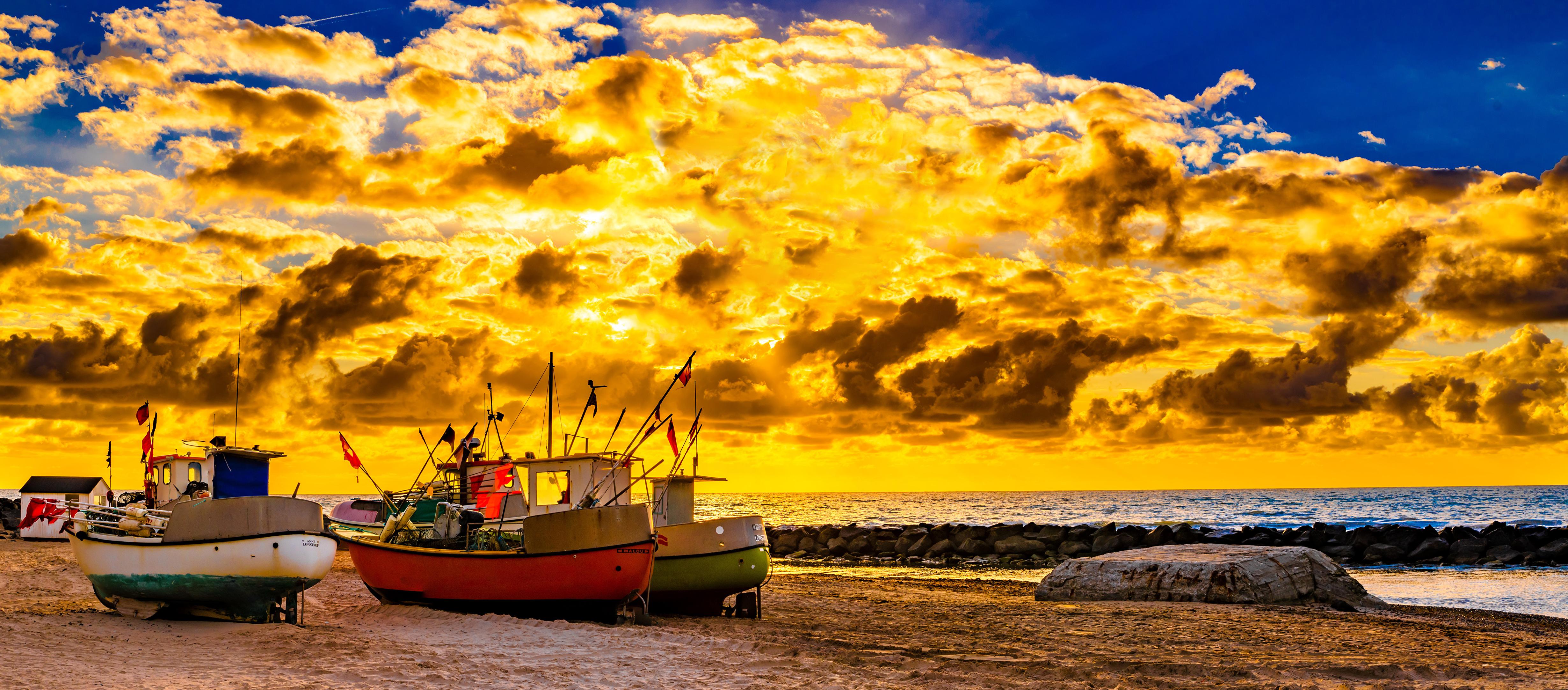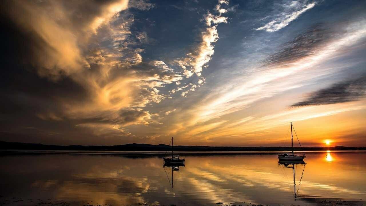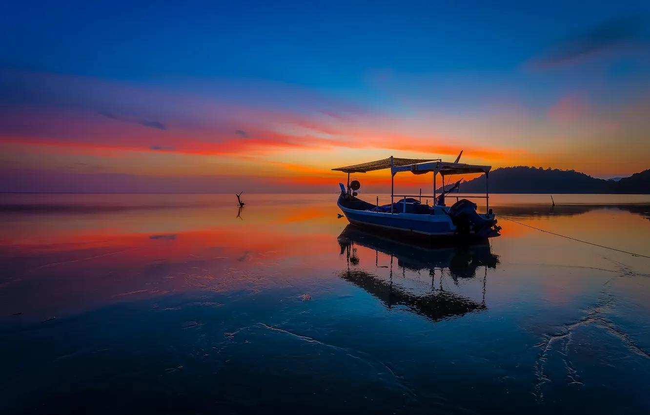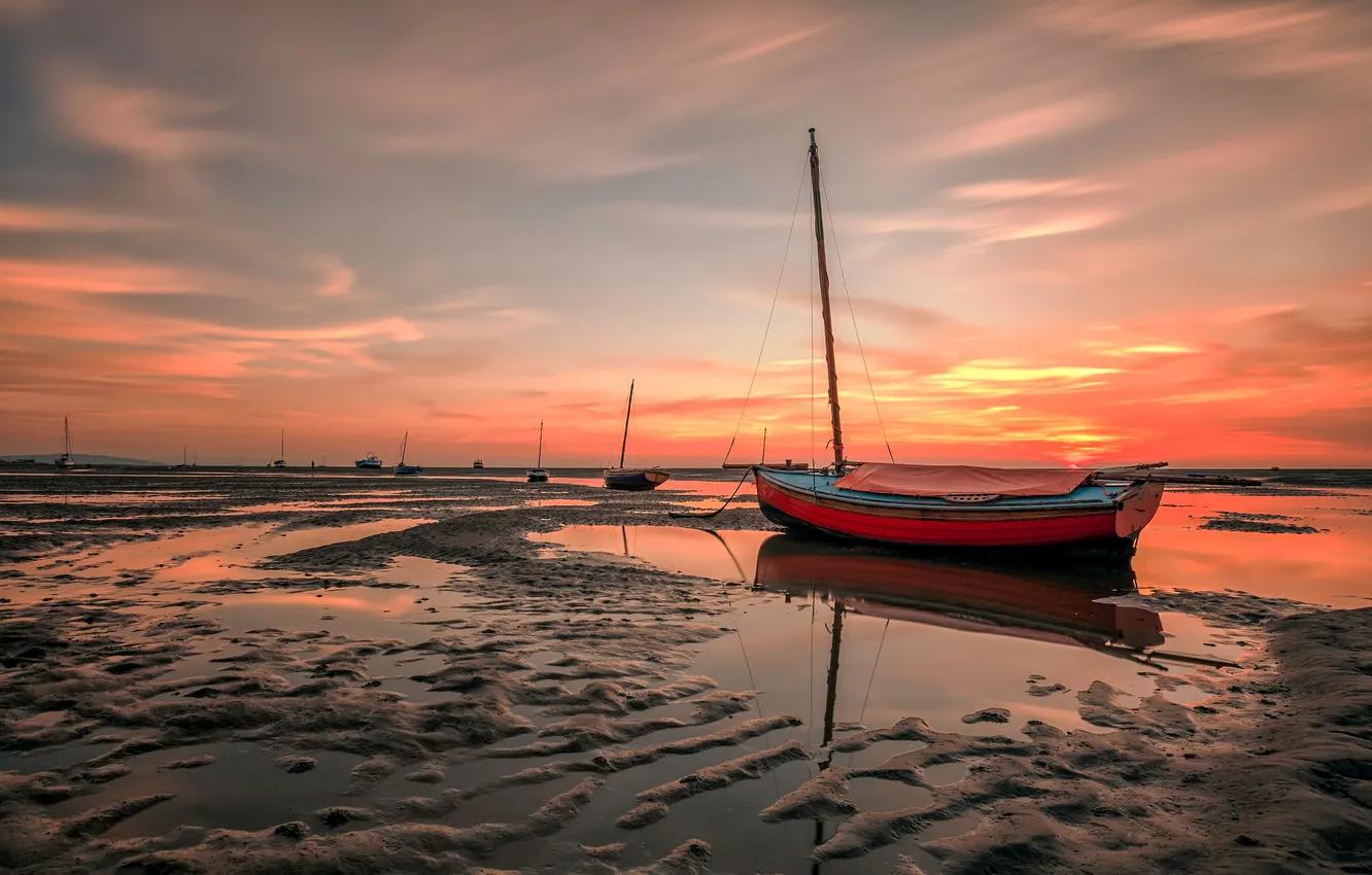 Пейзаж закат и с лодкой