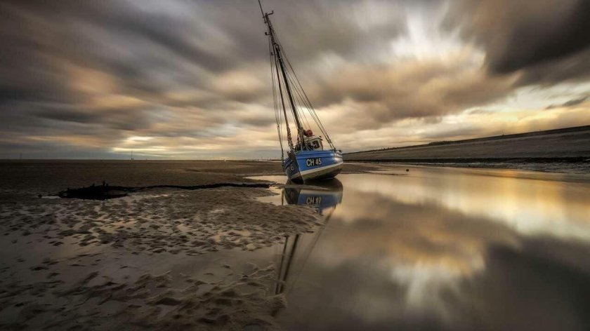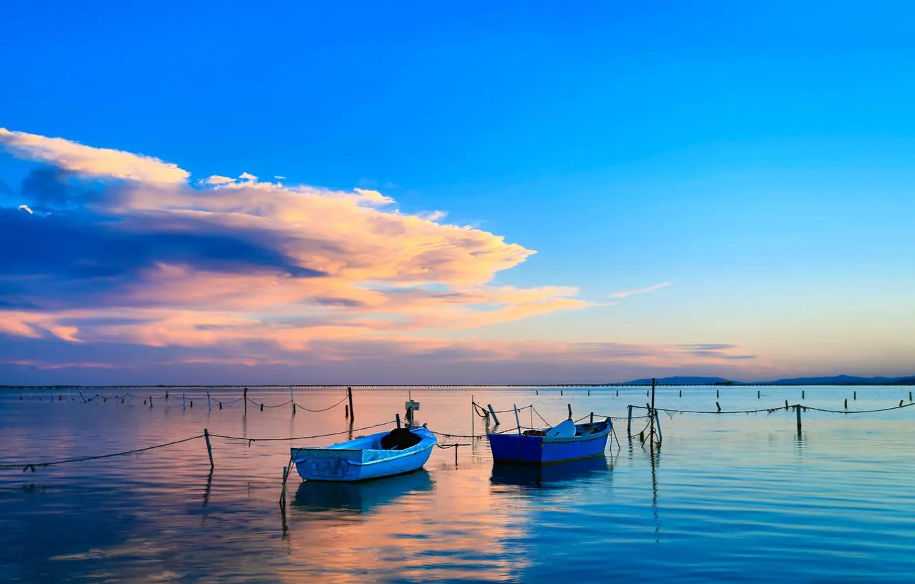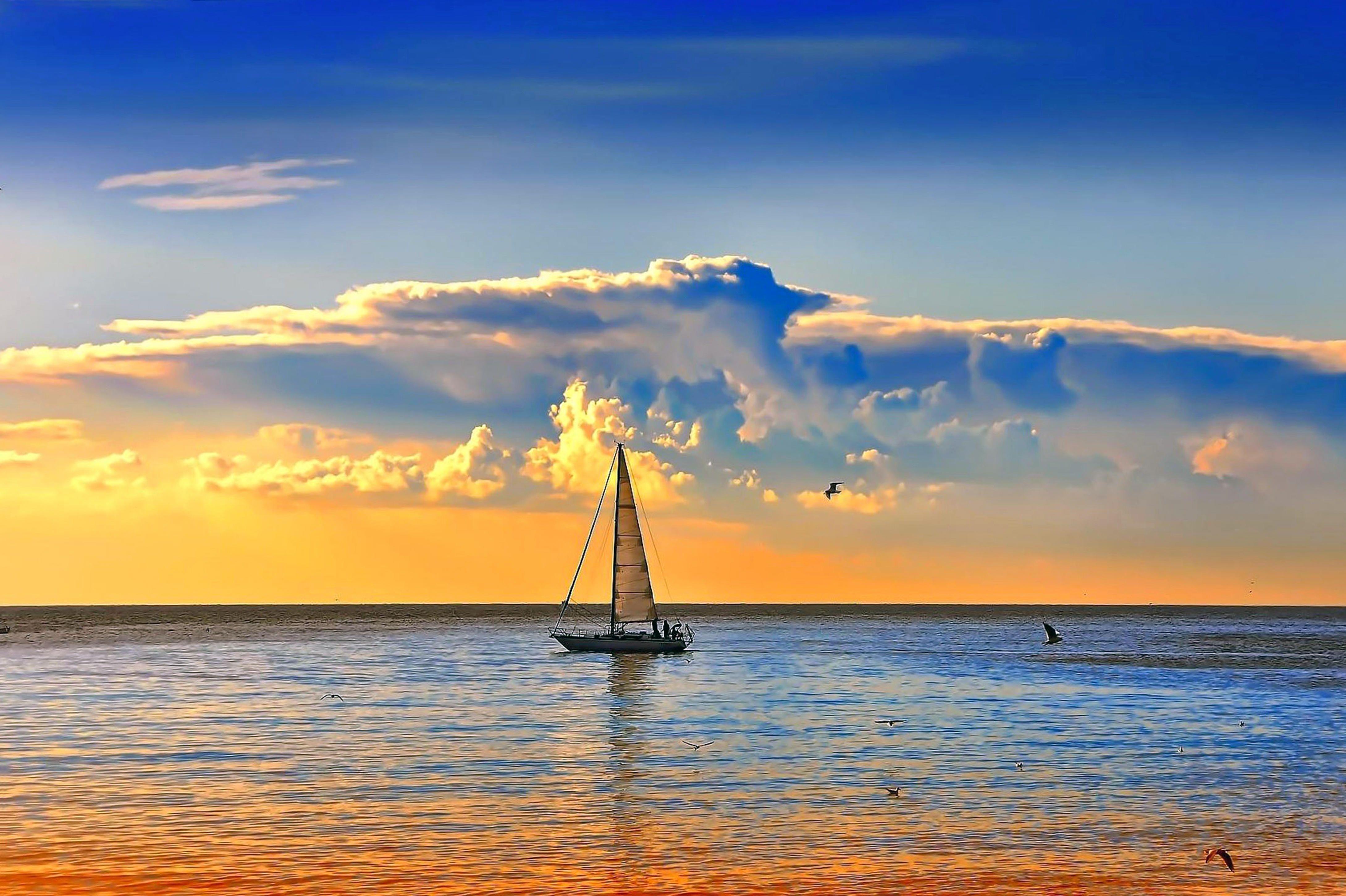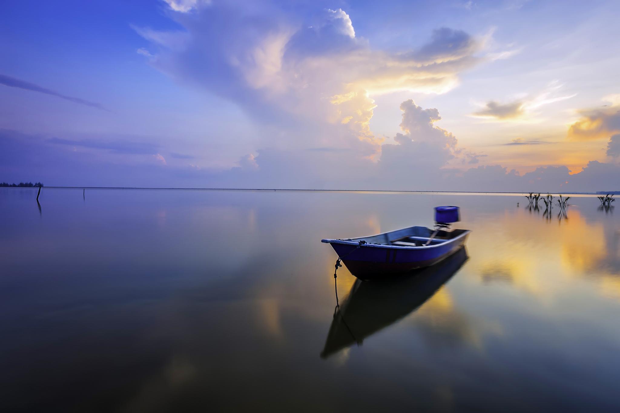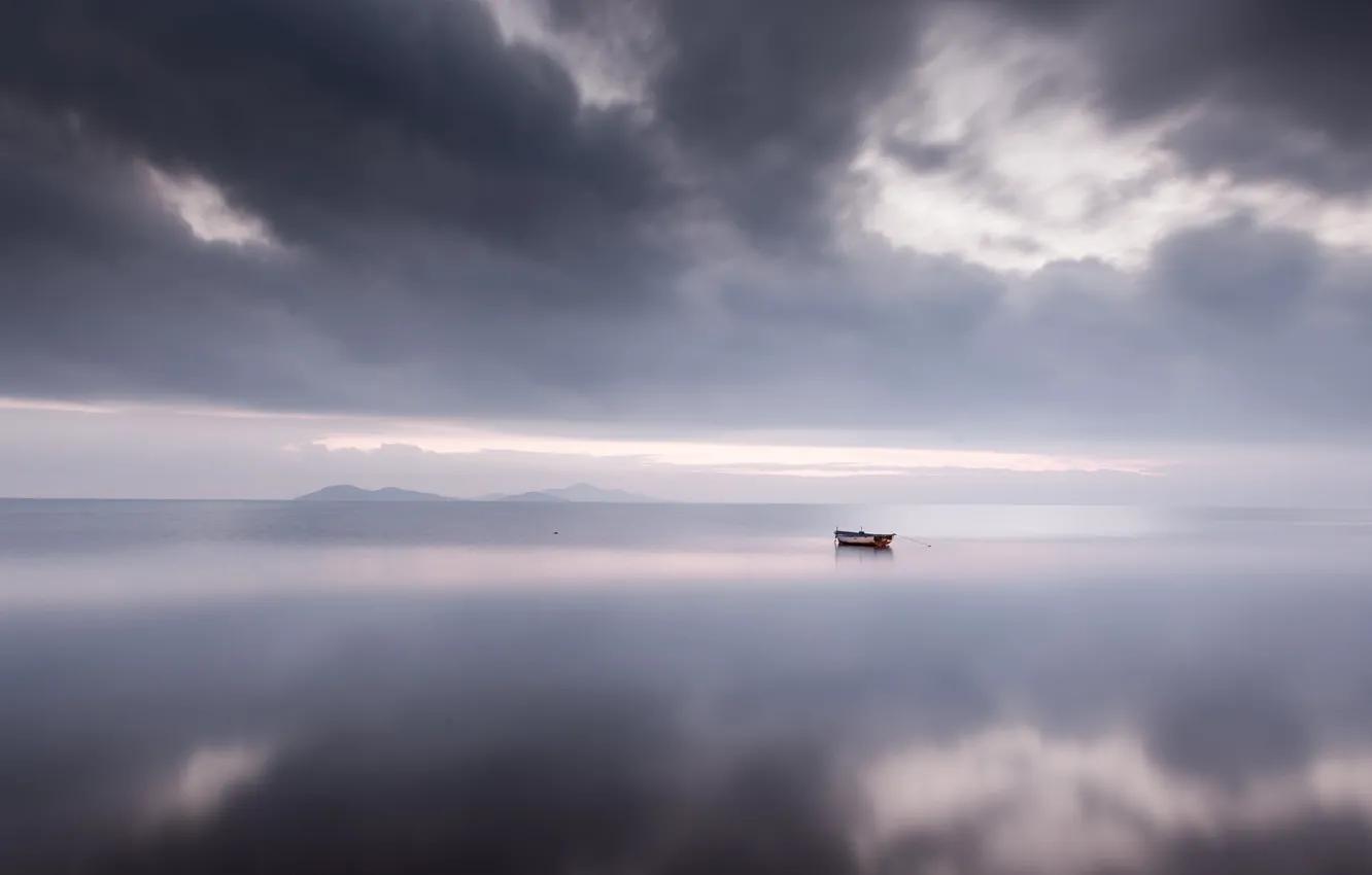 Море лодка облака
