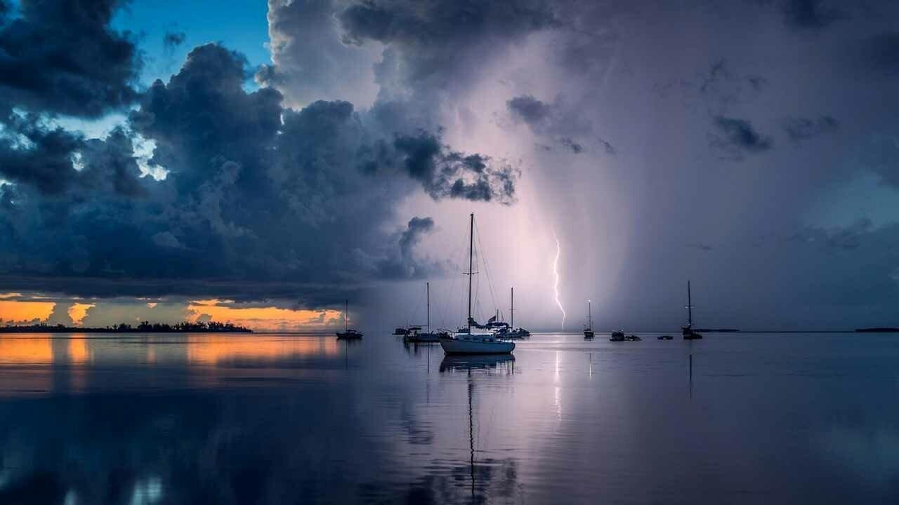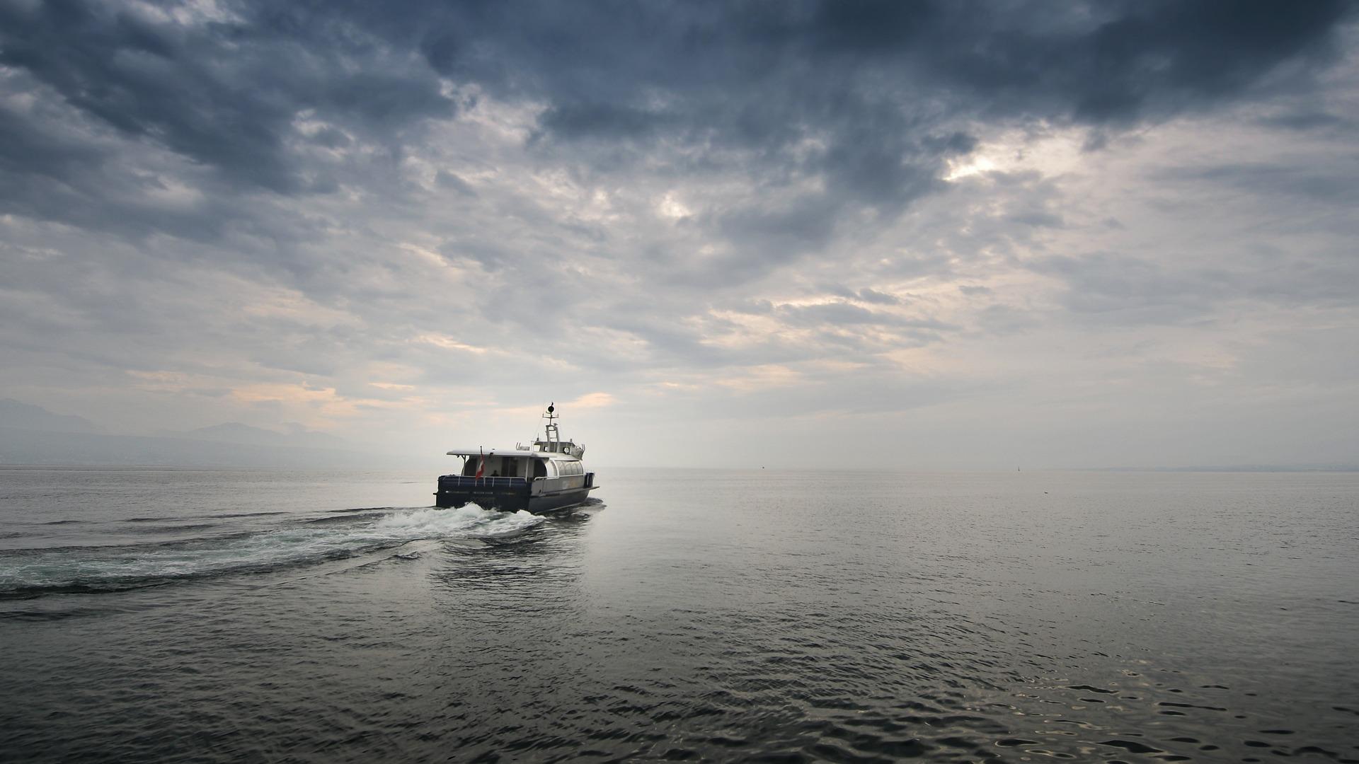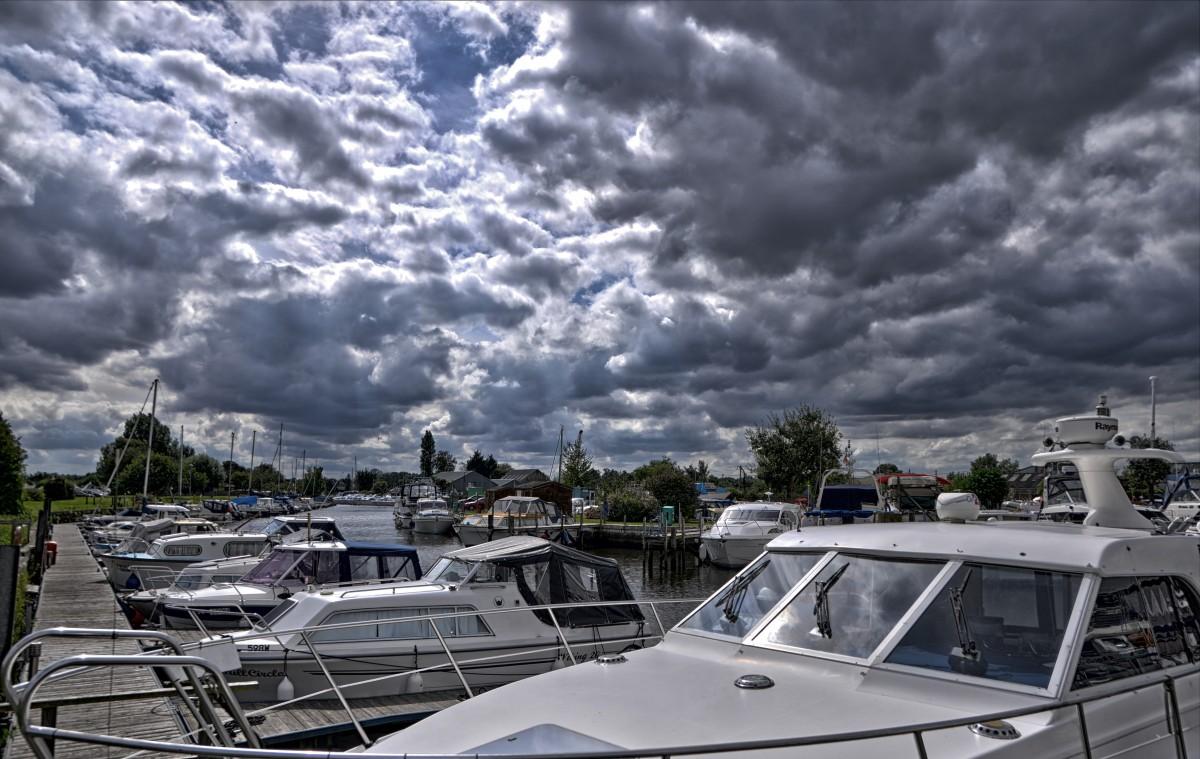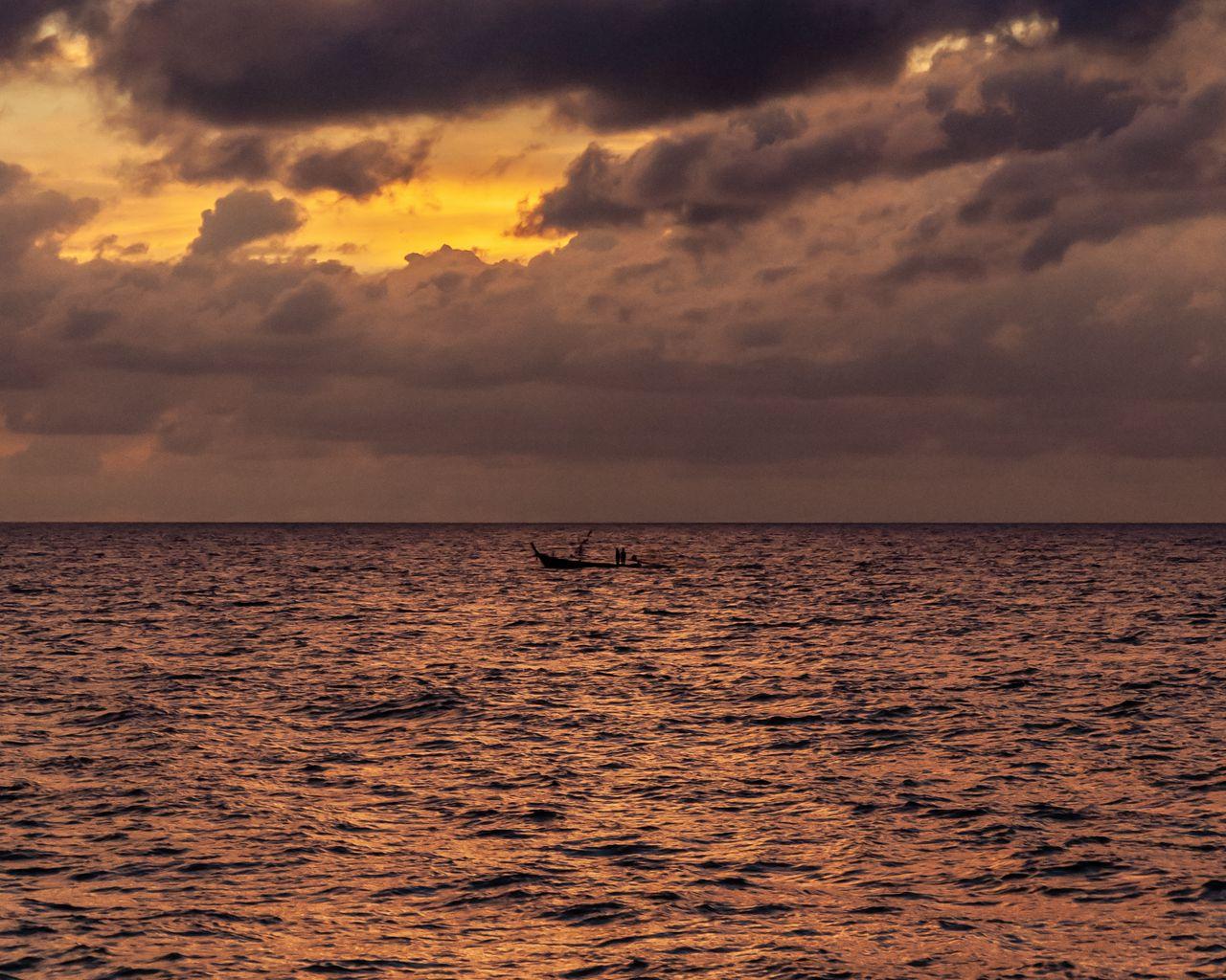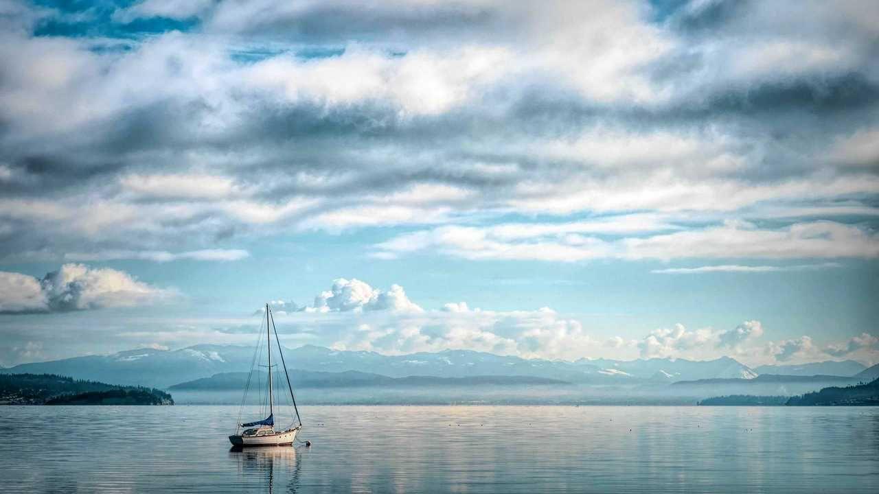 Море лодка облака