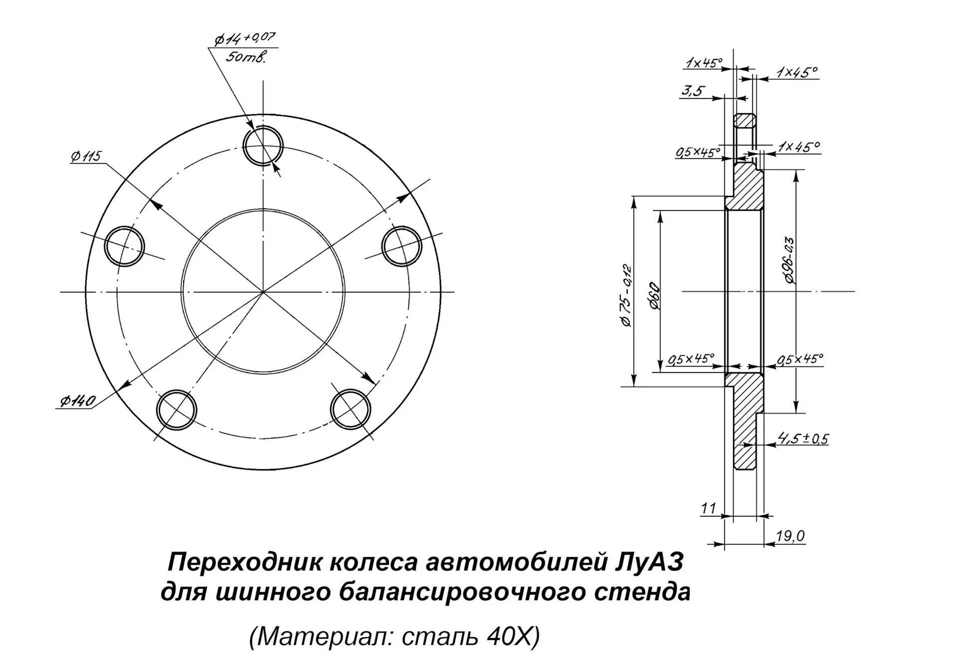 Чертеж проставки для дисков 5 112