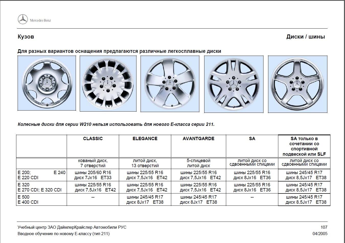 Диски Мерседес w211 параметры
