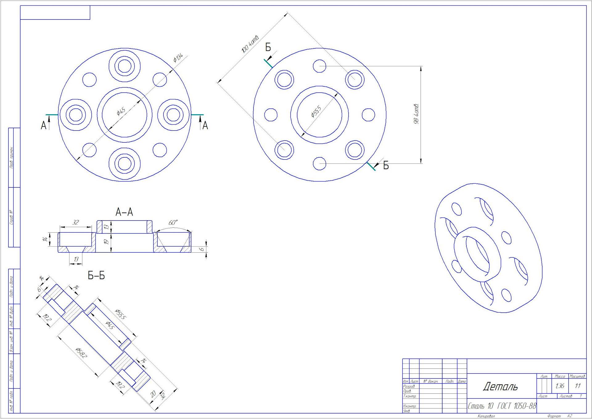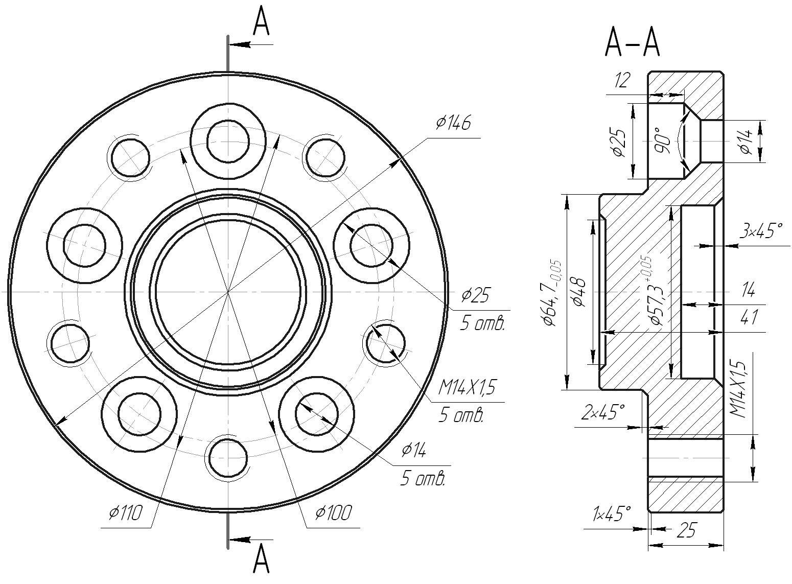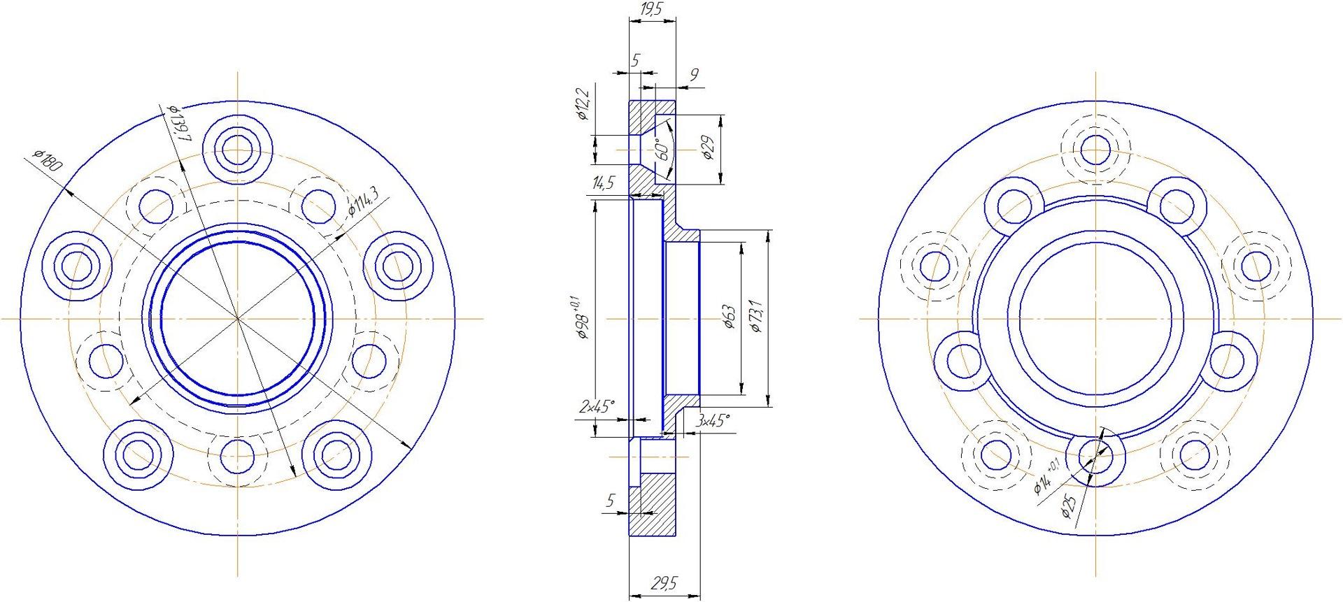 Чертеж проставок 5х100