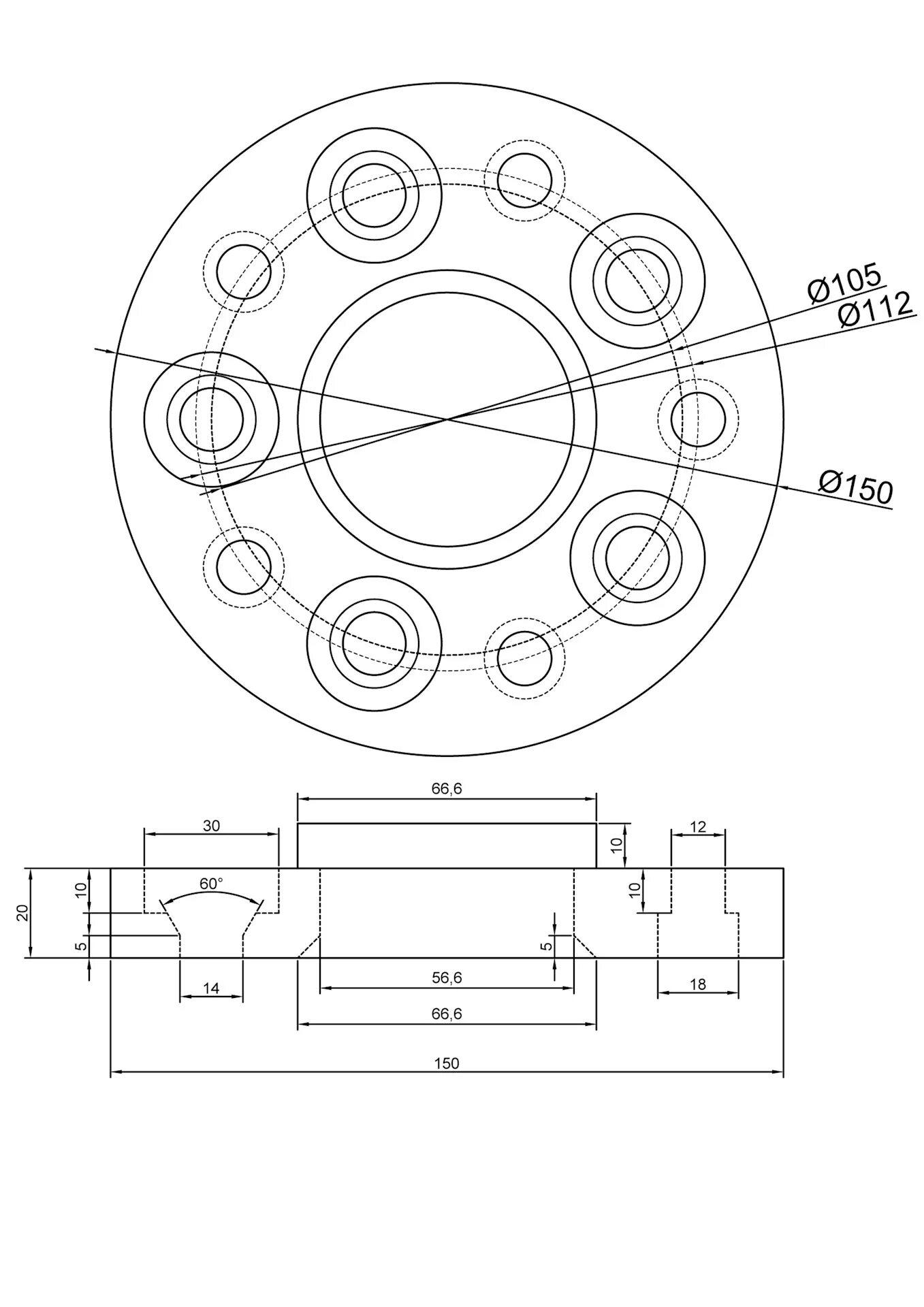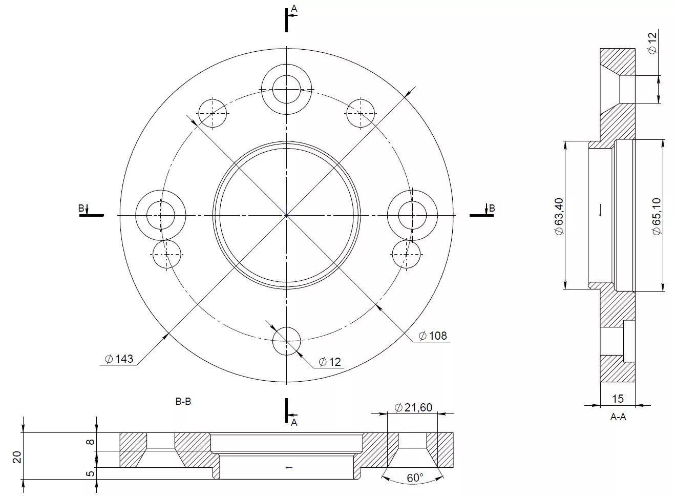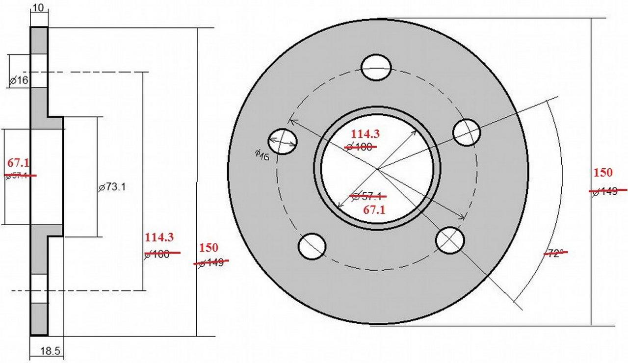 Чертеж проставок 5х112