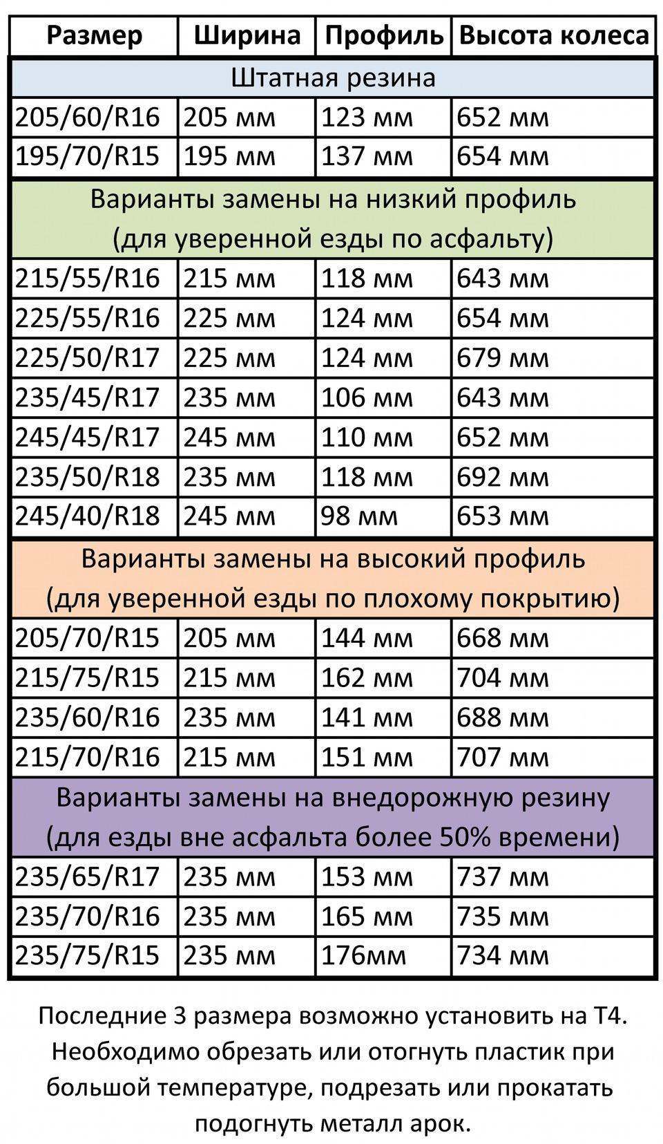 Размер колес на т4 Фольксваген