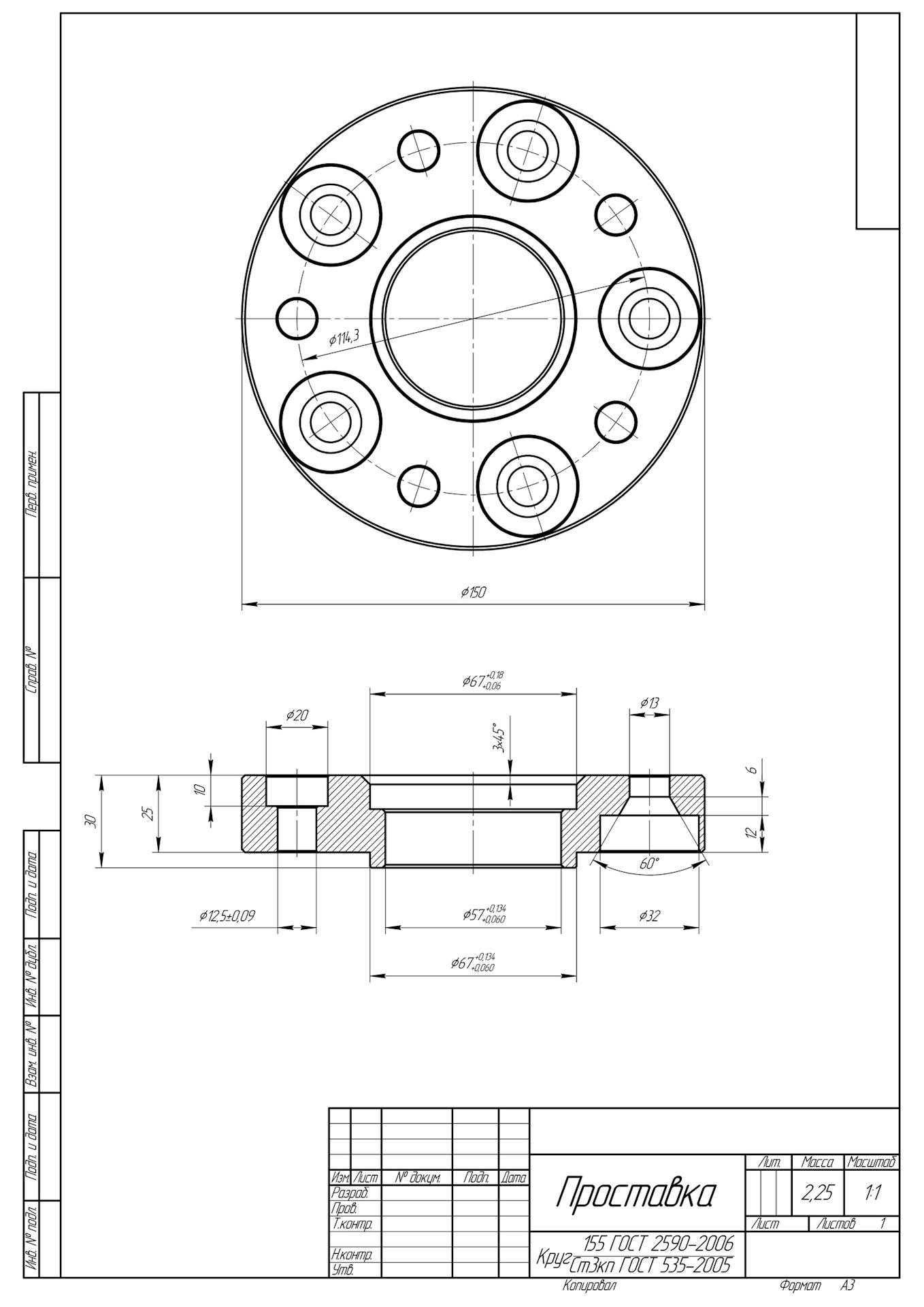 Чертеж колесных проставок ВАЗ 2107