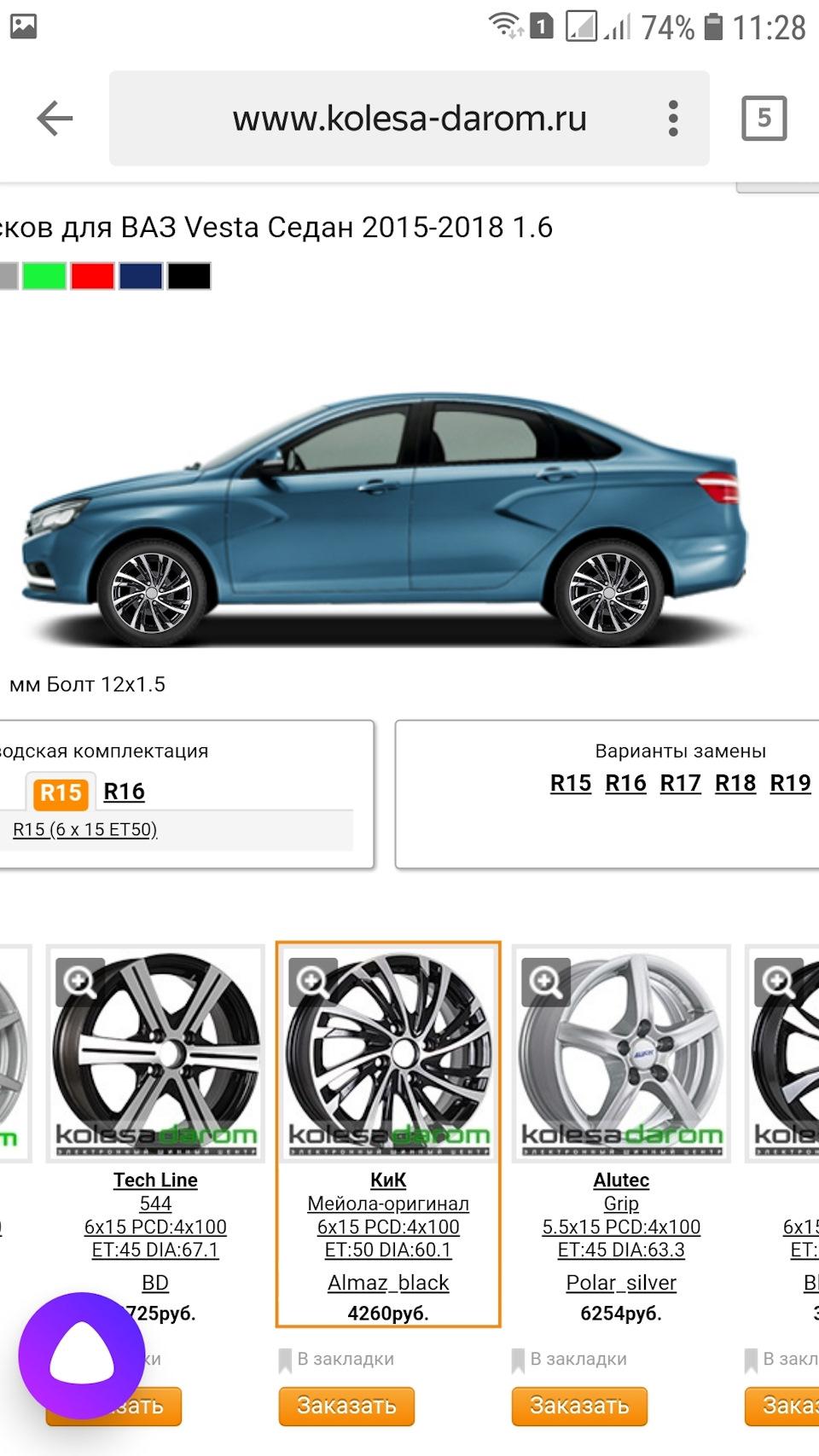 Лада Веста диски r16 параметры