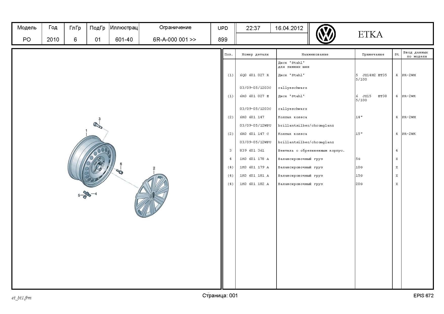 Параметры колёс Фольксваген поло седан