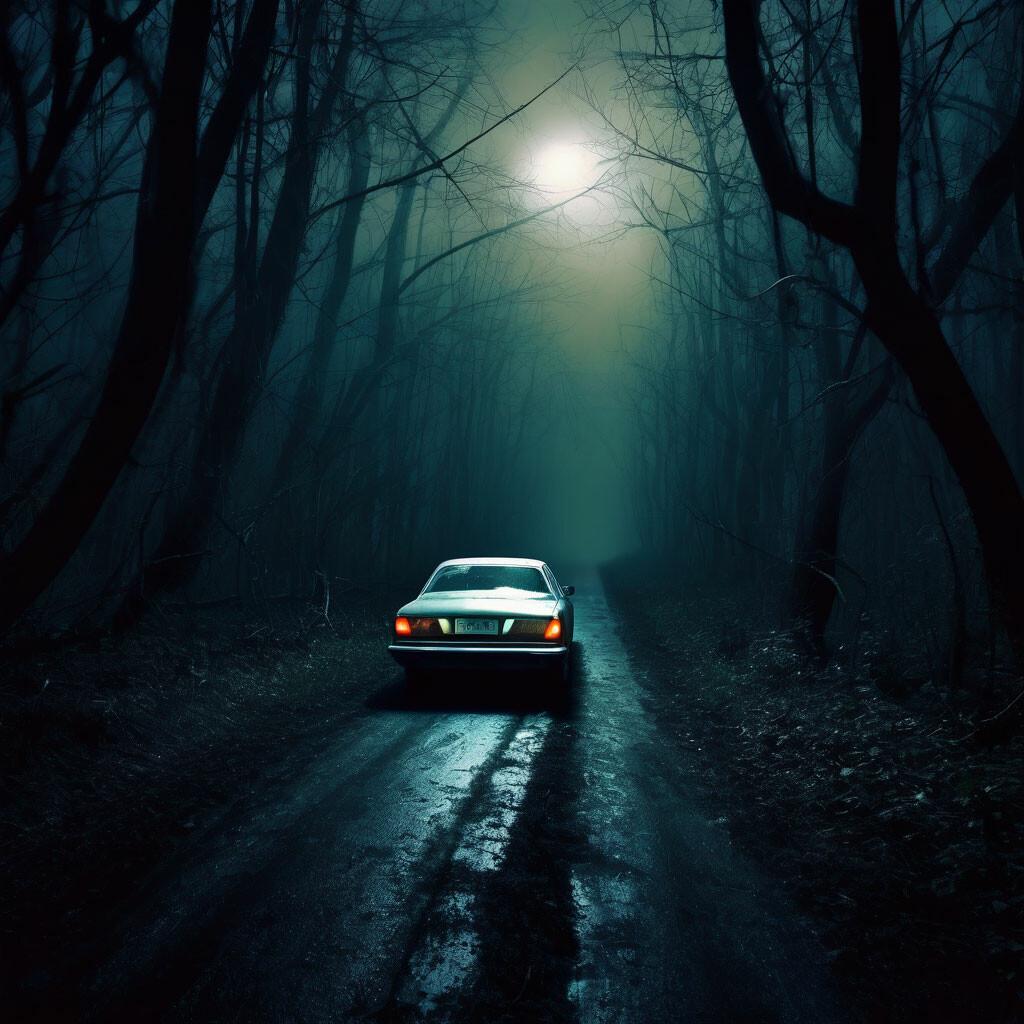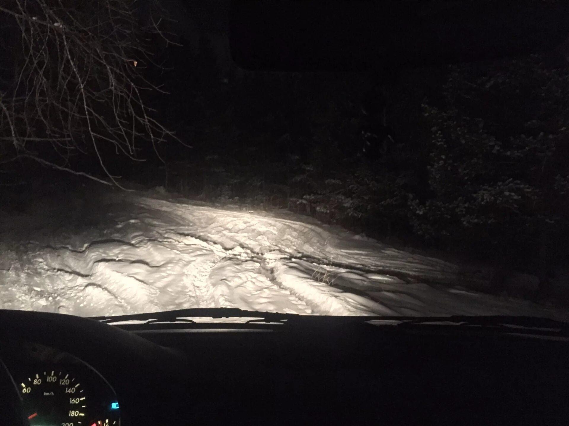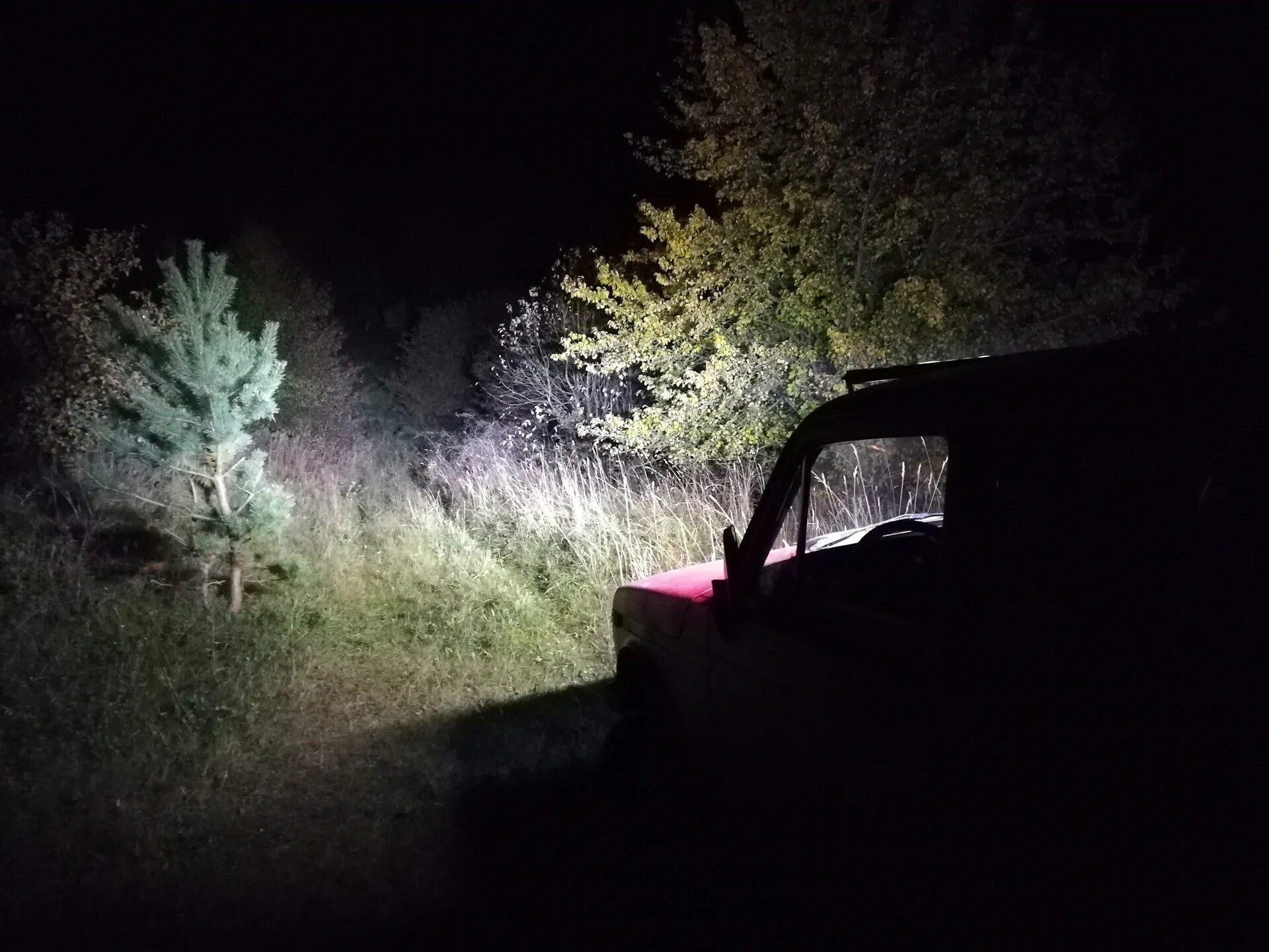 ![Машина в лесу ночью]()