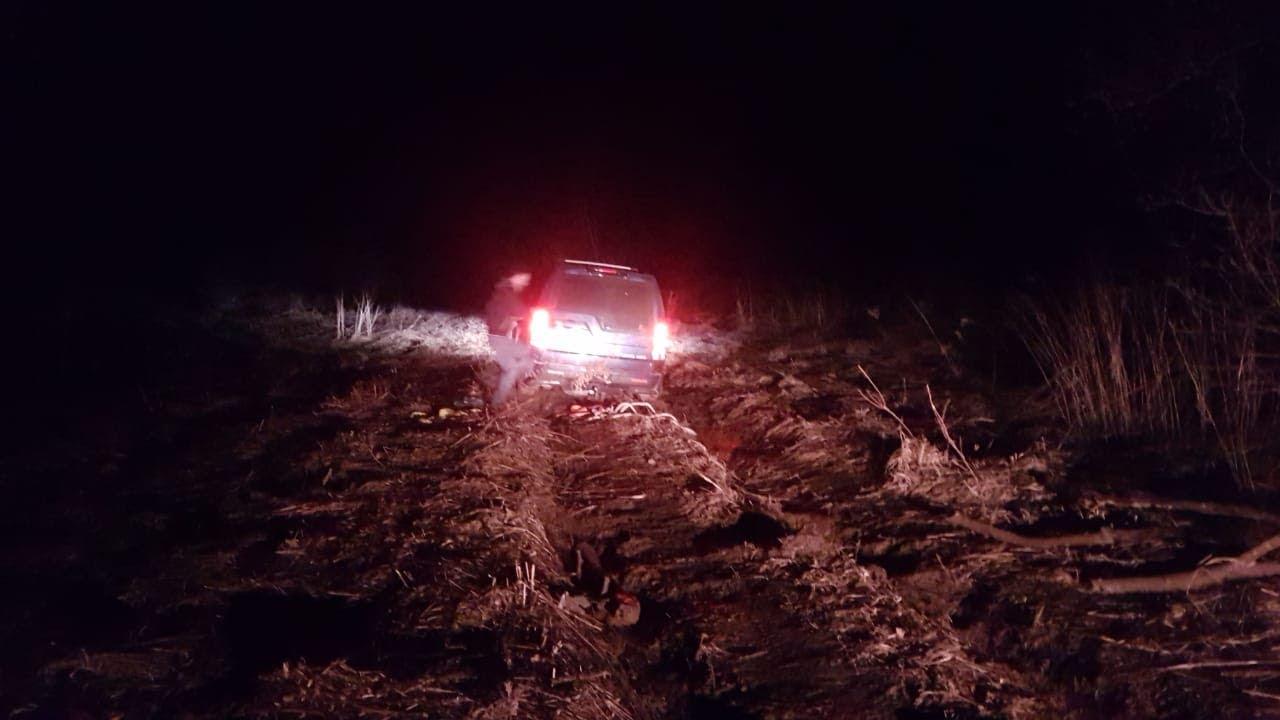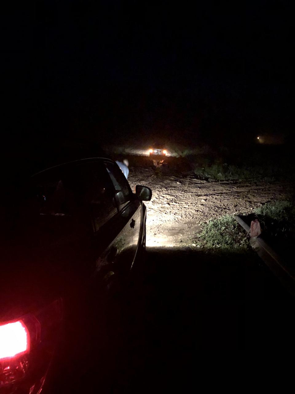 Машина застряла в грязи ночью