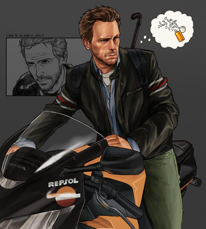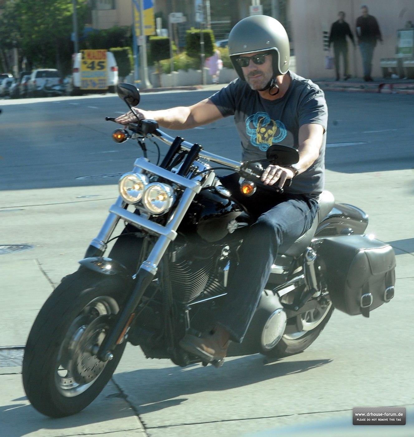 ![Грегори Хаус на мотоцикле]()