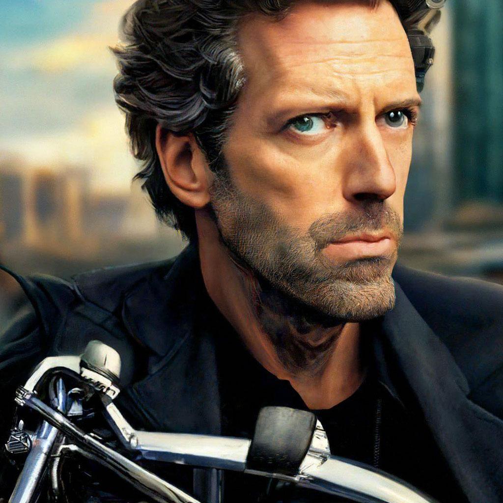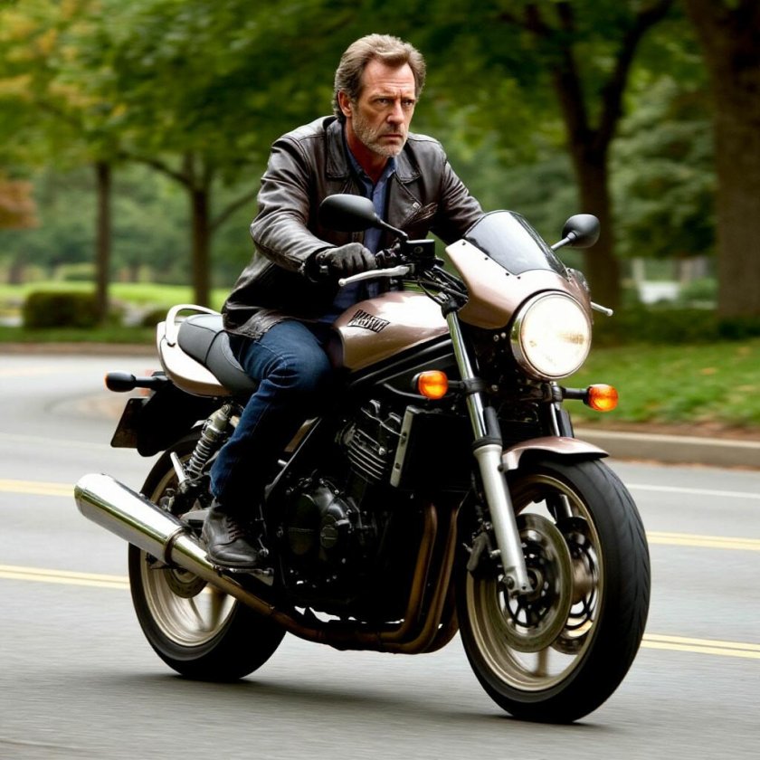 Хью Лори на мотоцикле
