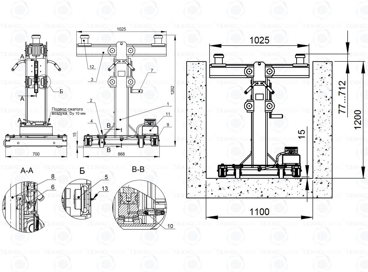 Подъемник канавный пневмогидравлический ПРК-10