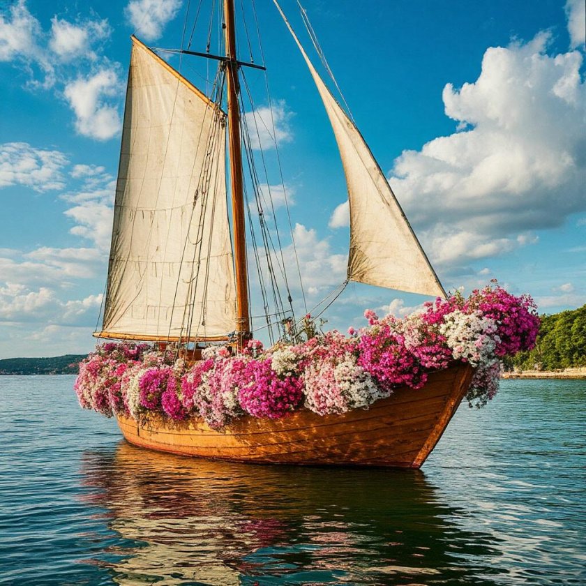 Цветник в лодке