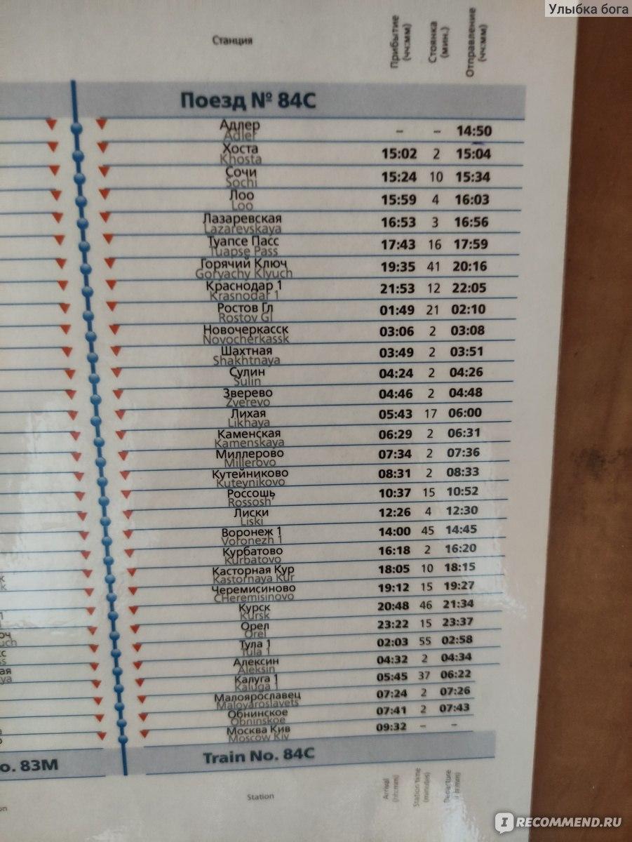 Маршрут поезда 084 Москва Адлер
