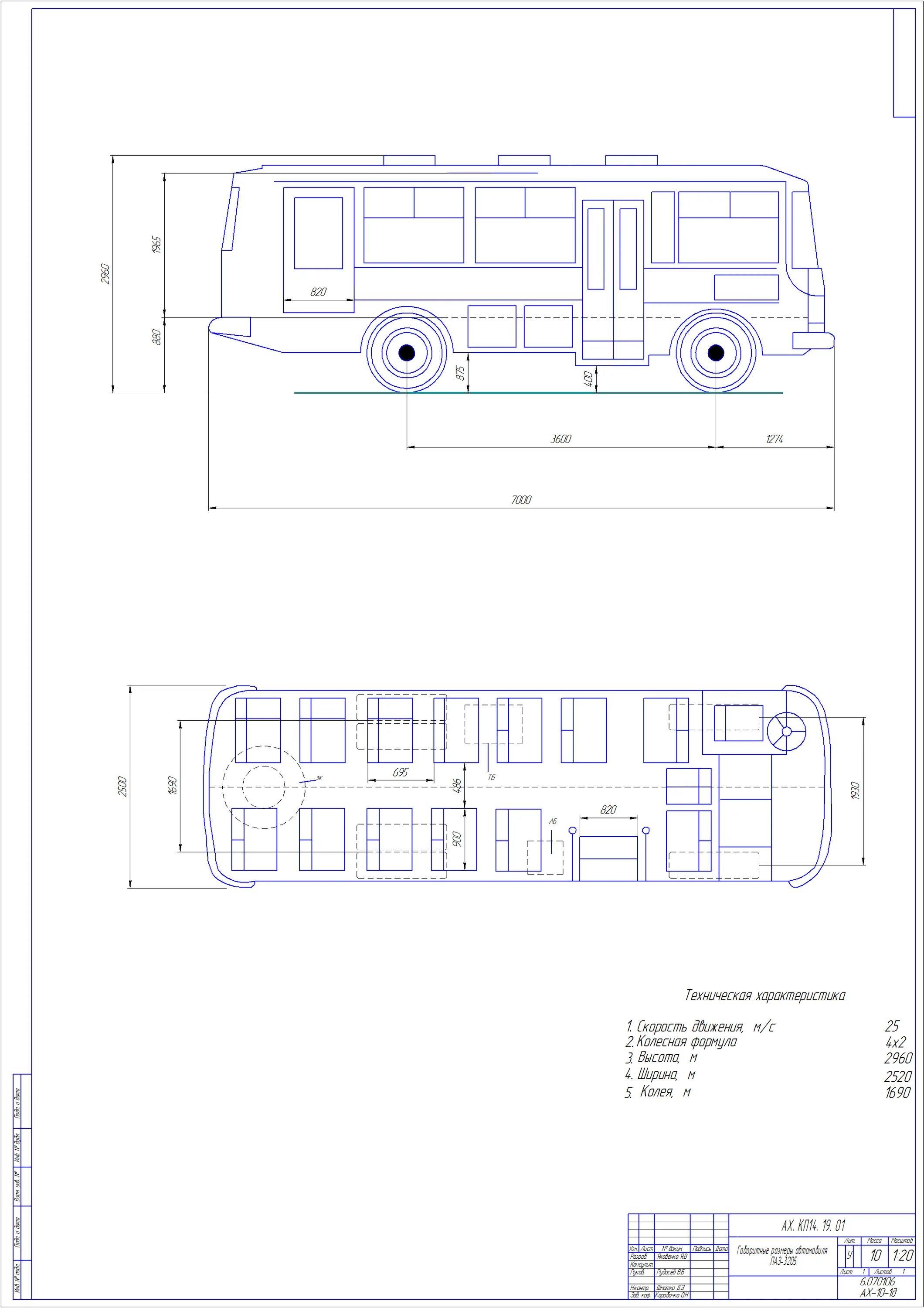 Чертеж автобуса ПАЗ 3205
