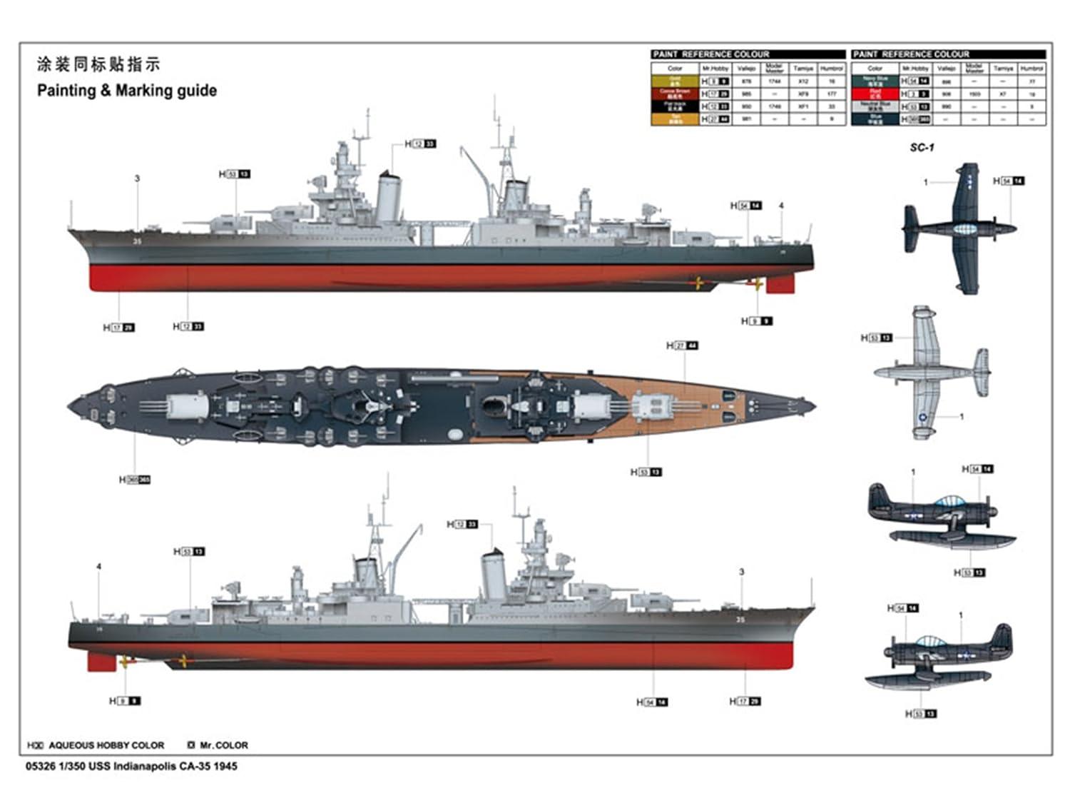 Trumpeter 05327 сборная модель корабля USS Indianapolis CA-35 1944 Г 1 350