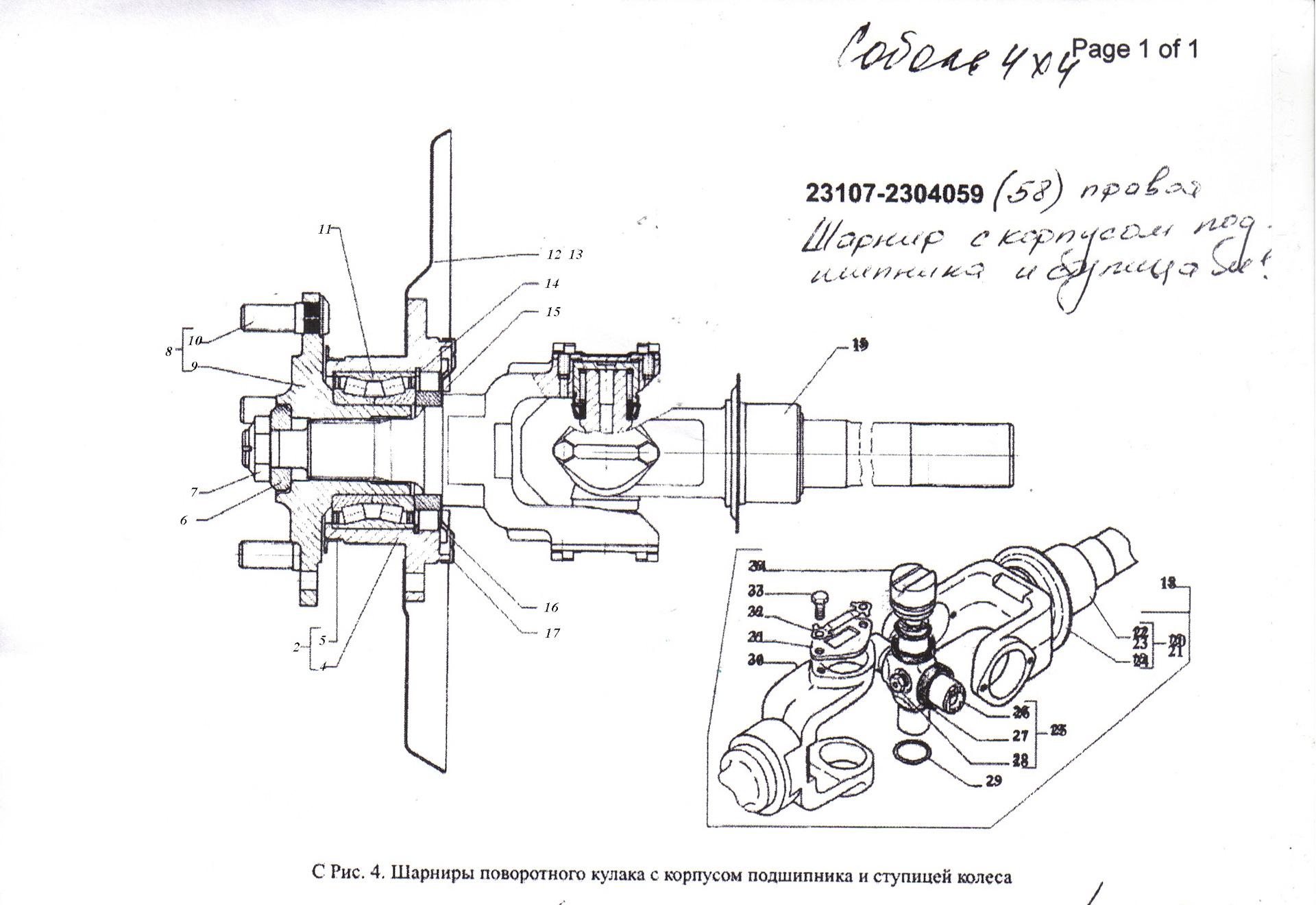 Схема переднего моста Соболь 4х4