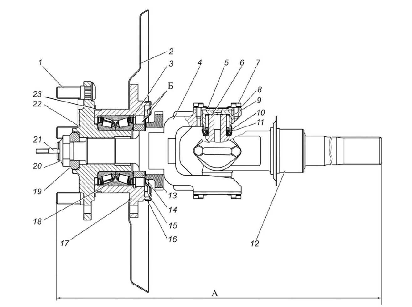 Ступица переднего колеса Газель 3302 схема