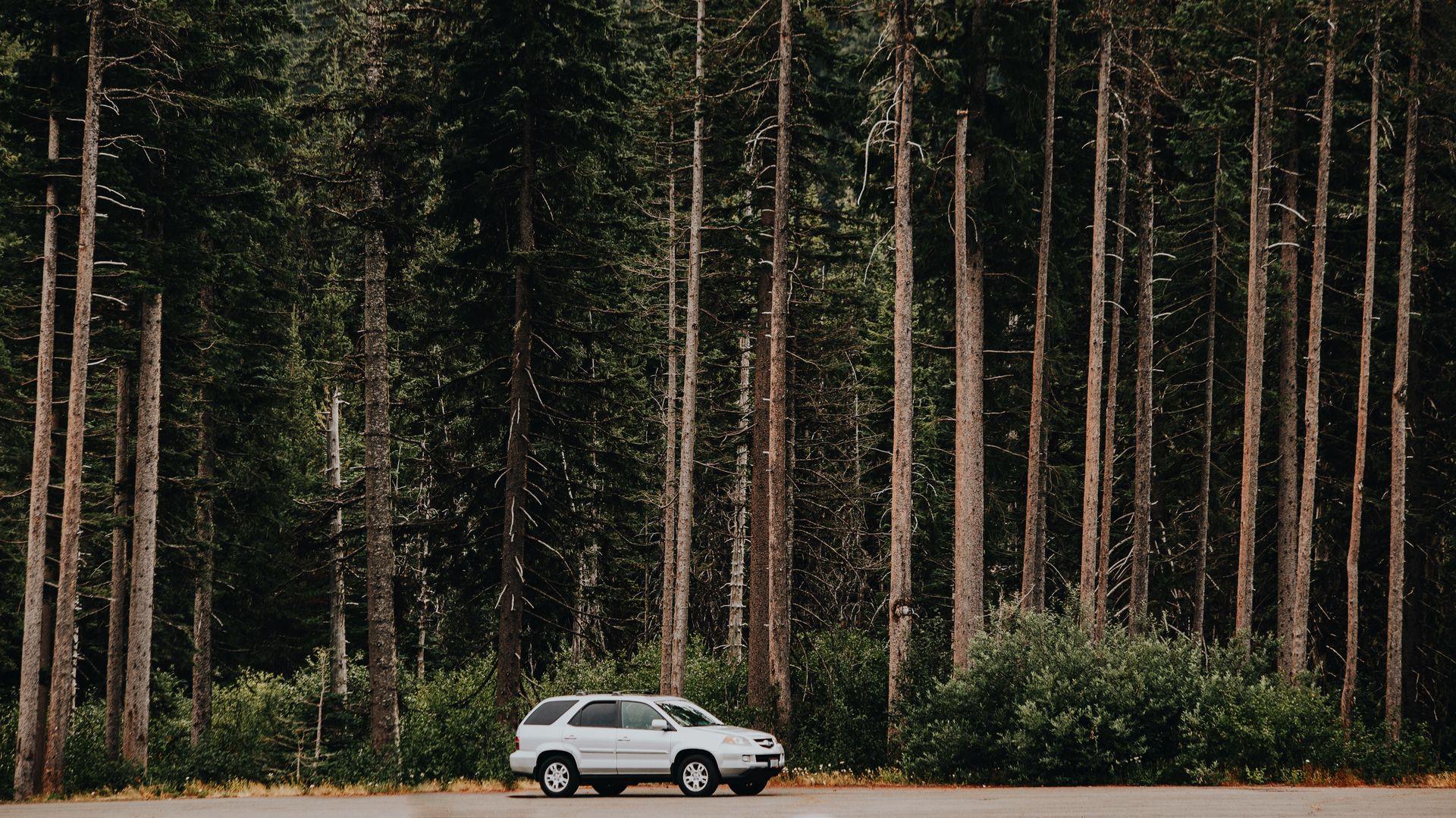 Лес вдоль дороги вид сбоку