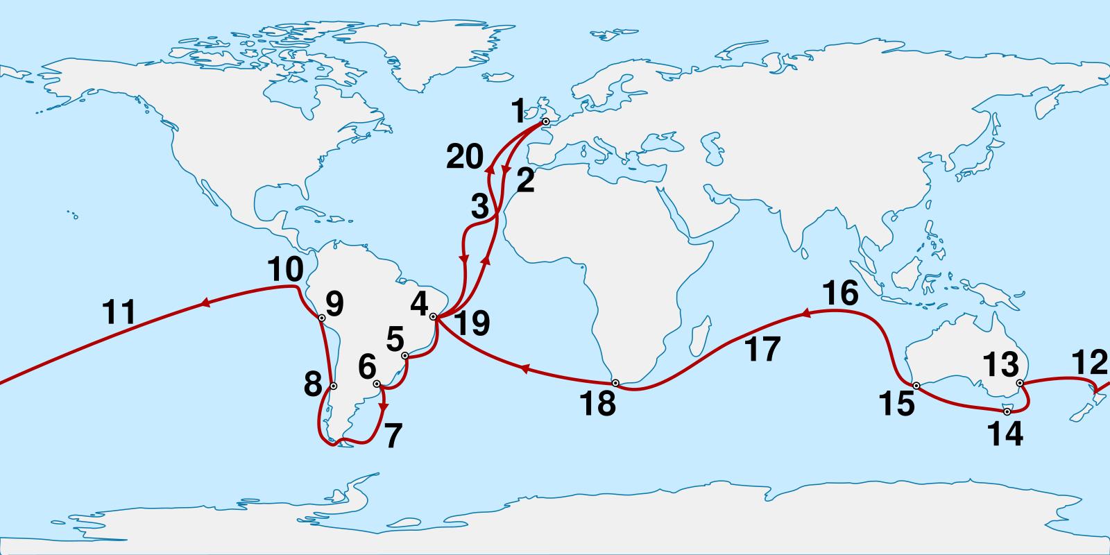 Карта путешествий Чарльза Дарвина