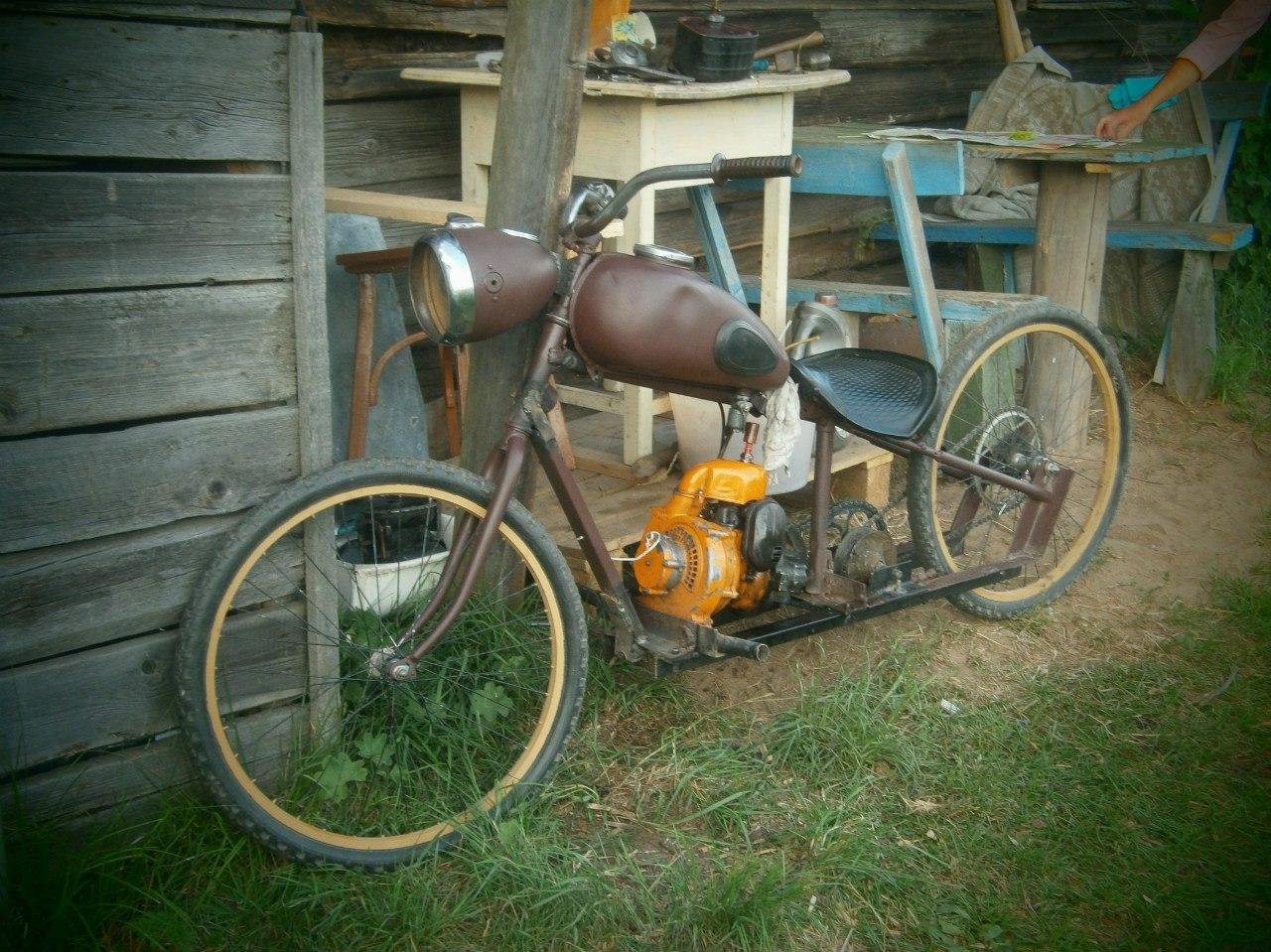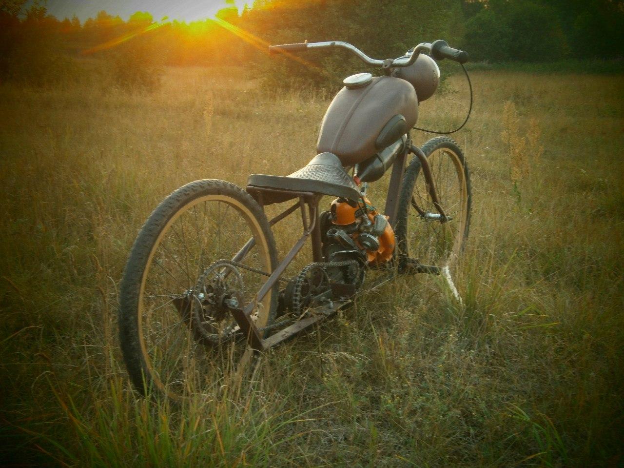 ![Велосипед Урал с двигателем от бензопилы Дружба]()