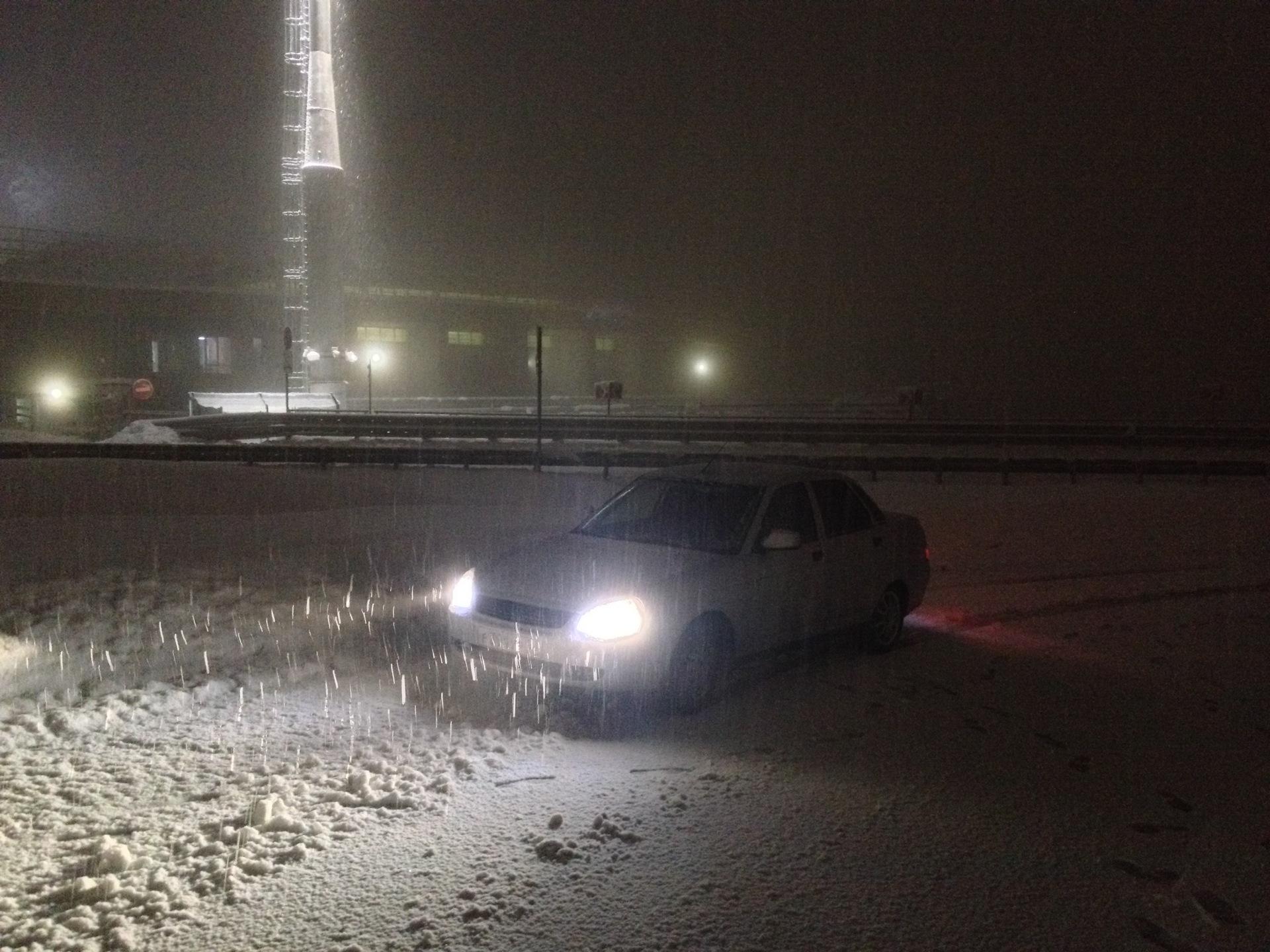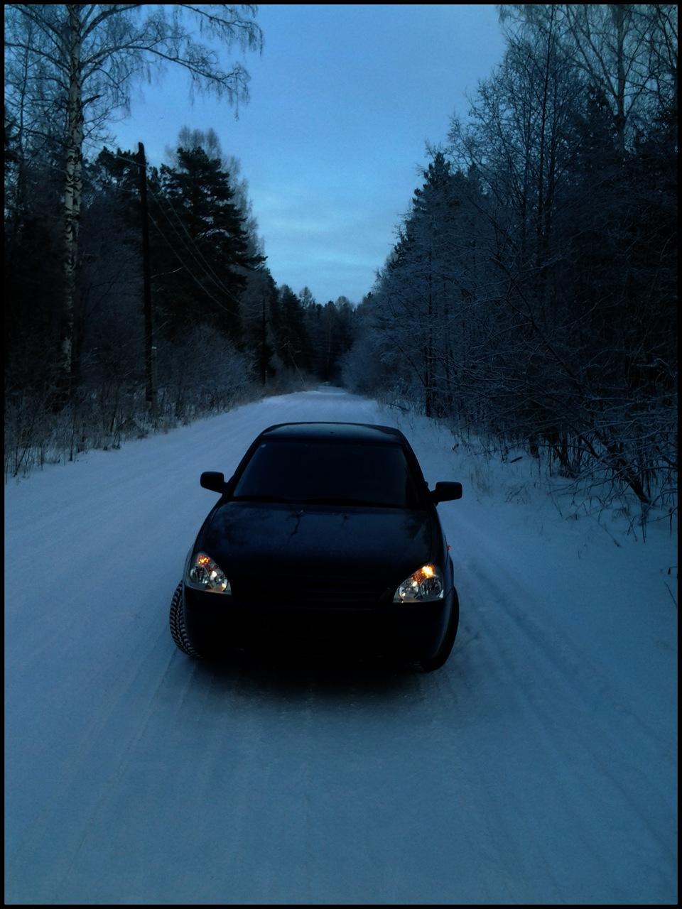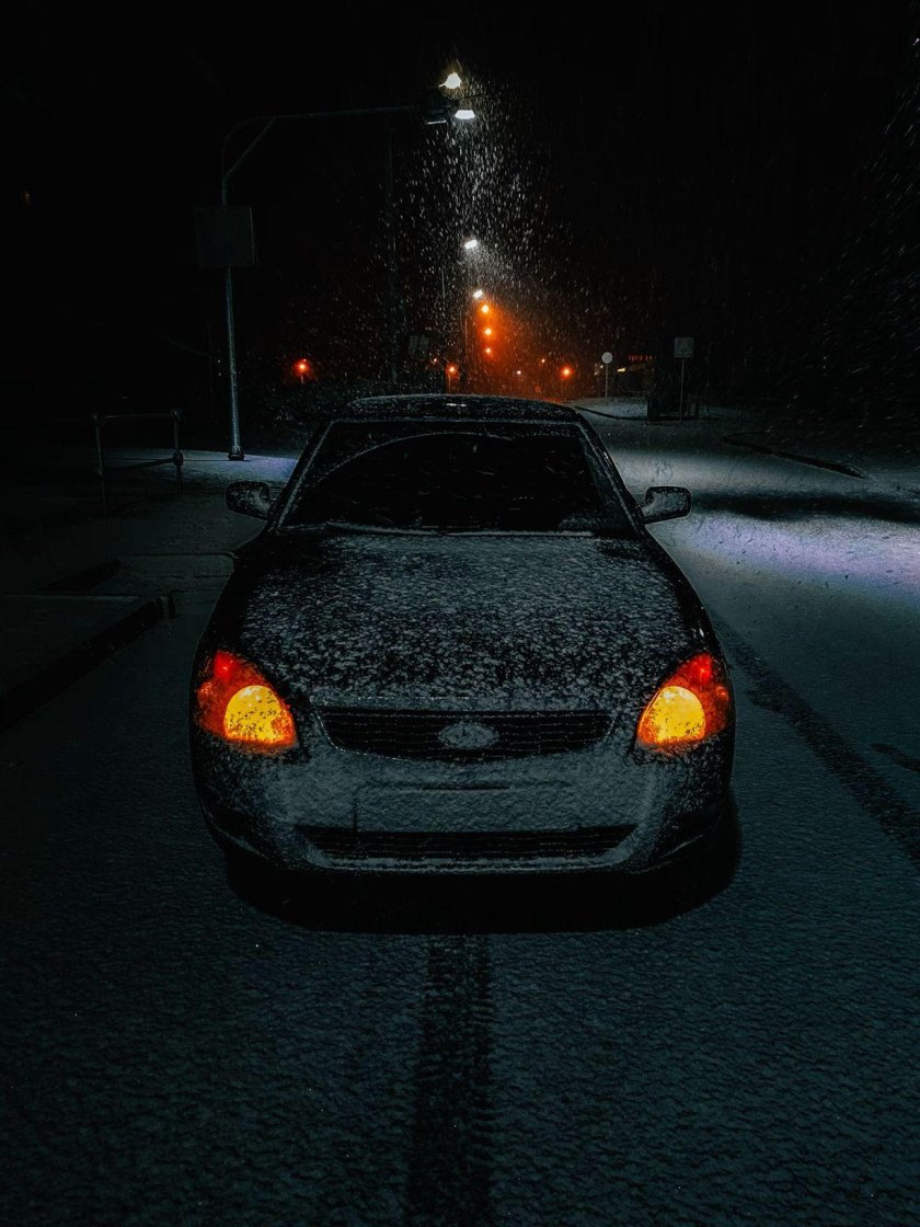 Приора ночью зимой