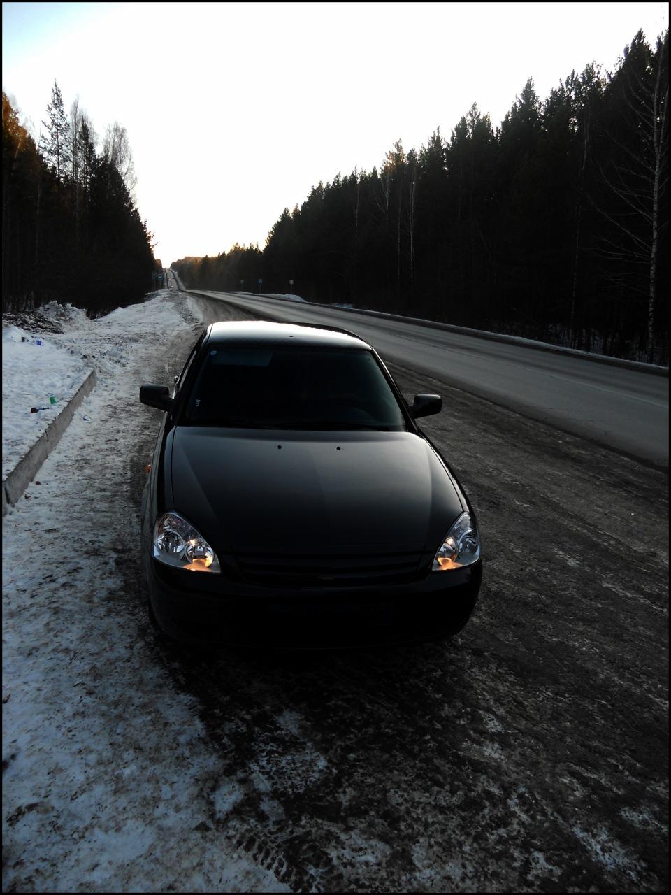 Лада Приора седан черная зимой