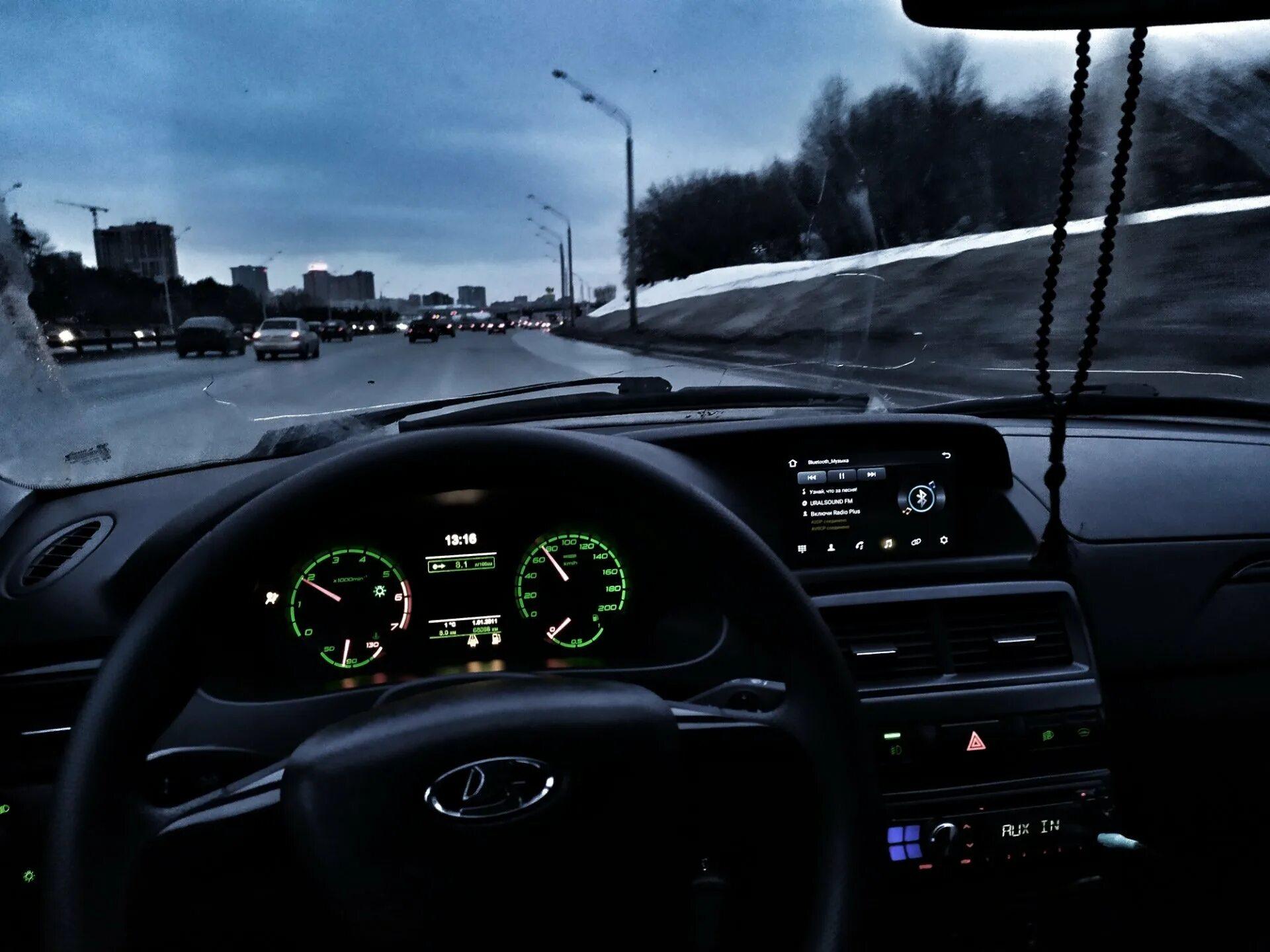 За рулем Приоры ночью