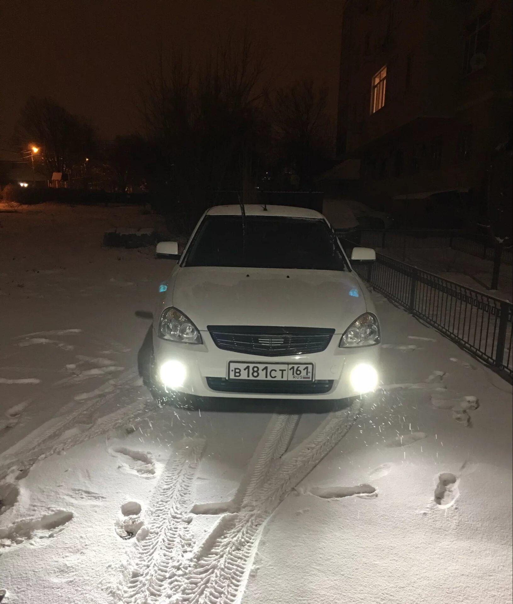 Приора белая зима ночь