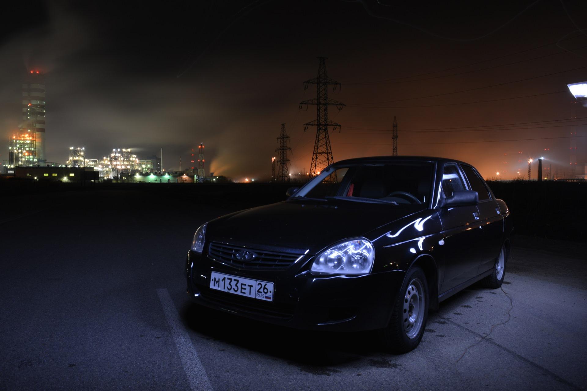 Лада Приора черная ночью