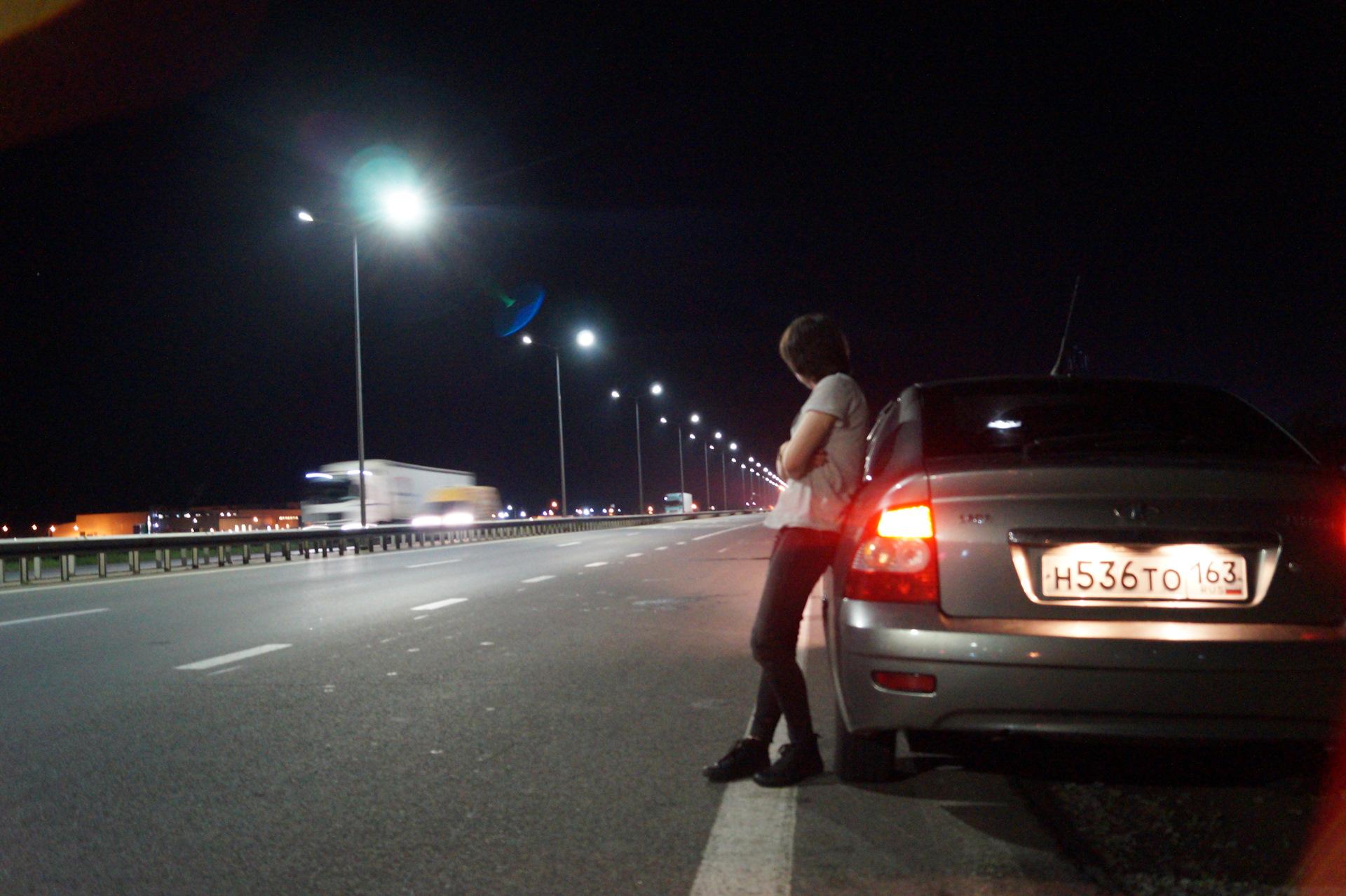 Девушка в приоре ночью