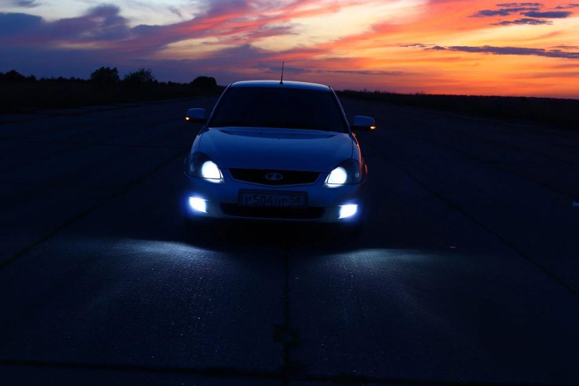Приора ночью на габаритов