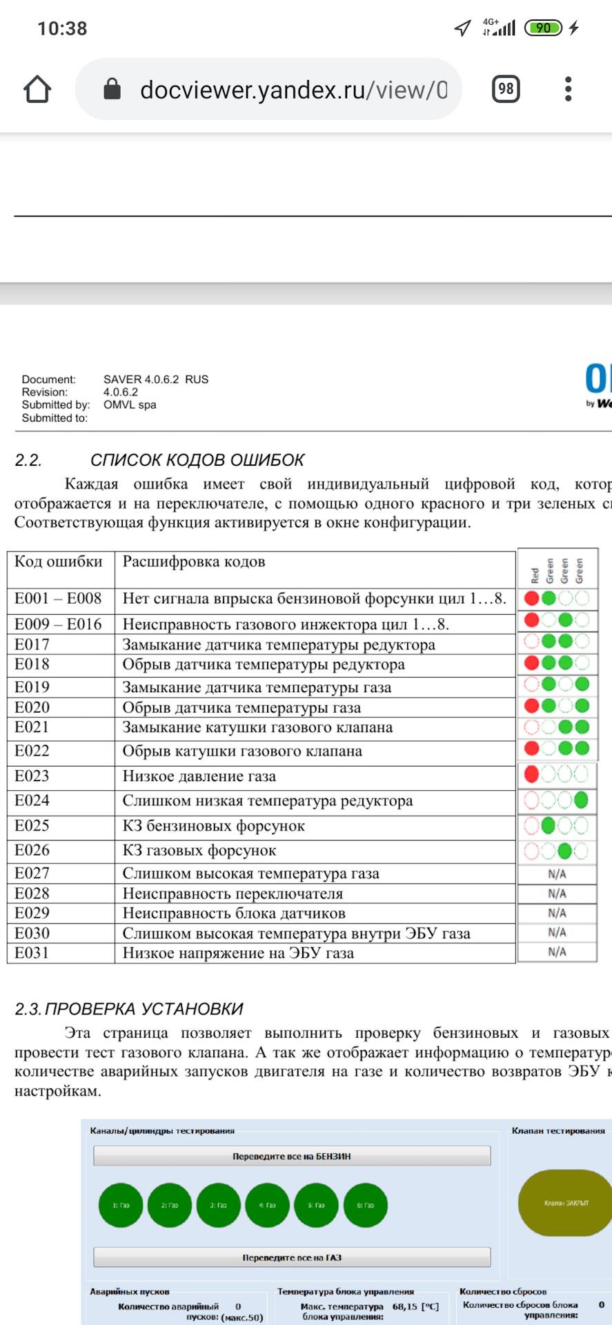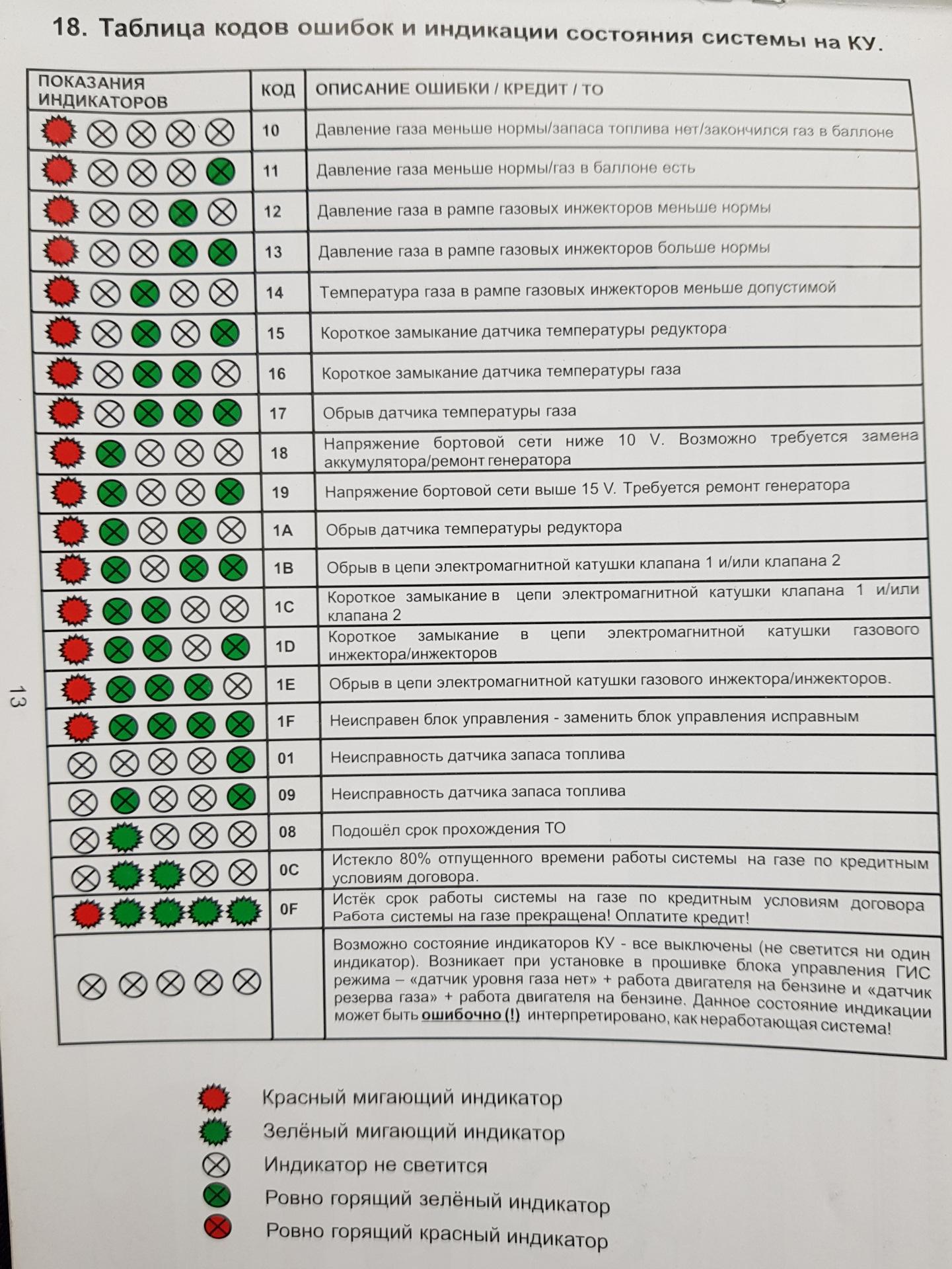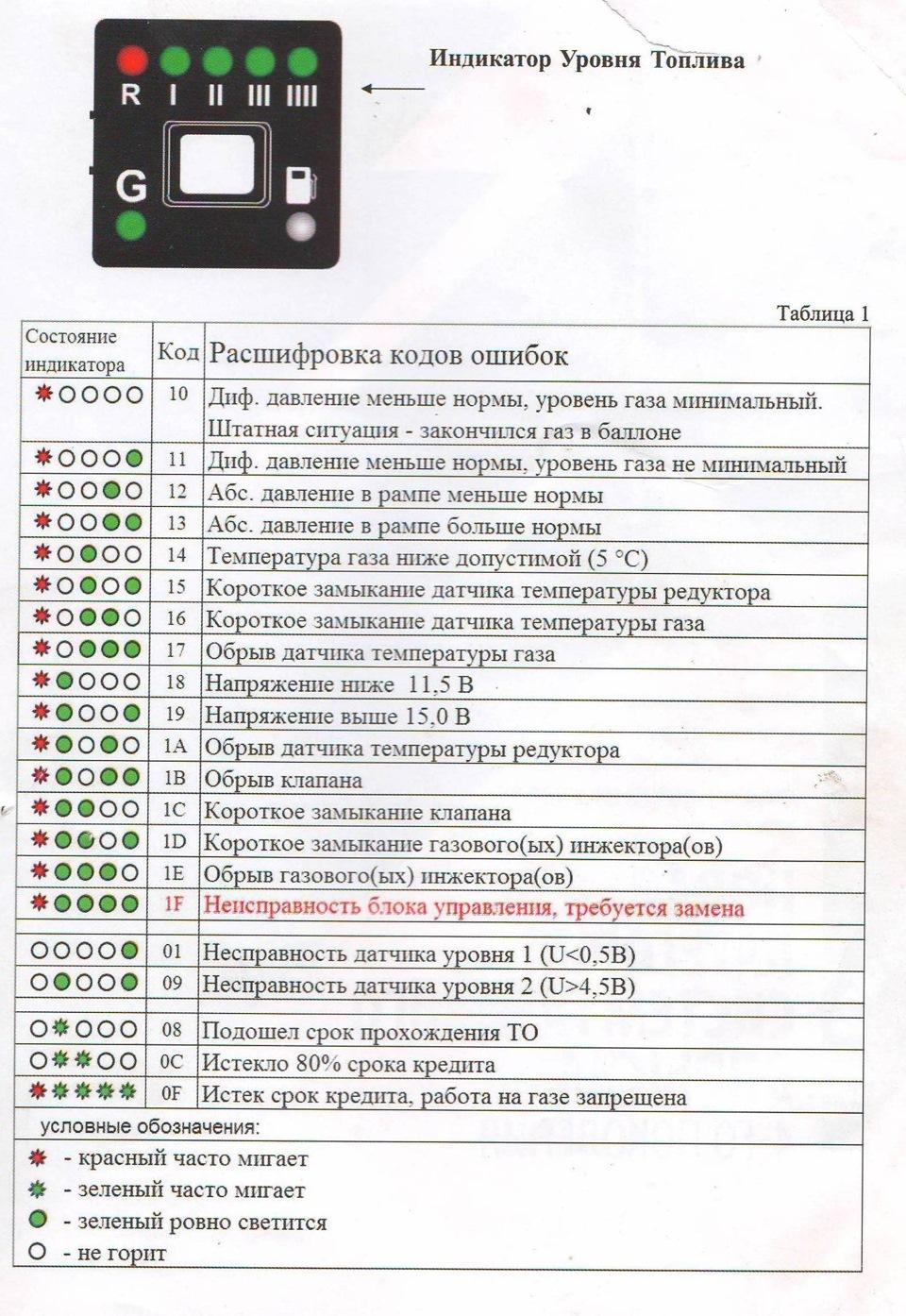 Таблица неисправностей ГБО 4 поколения