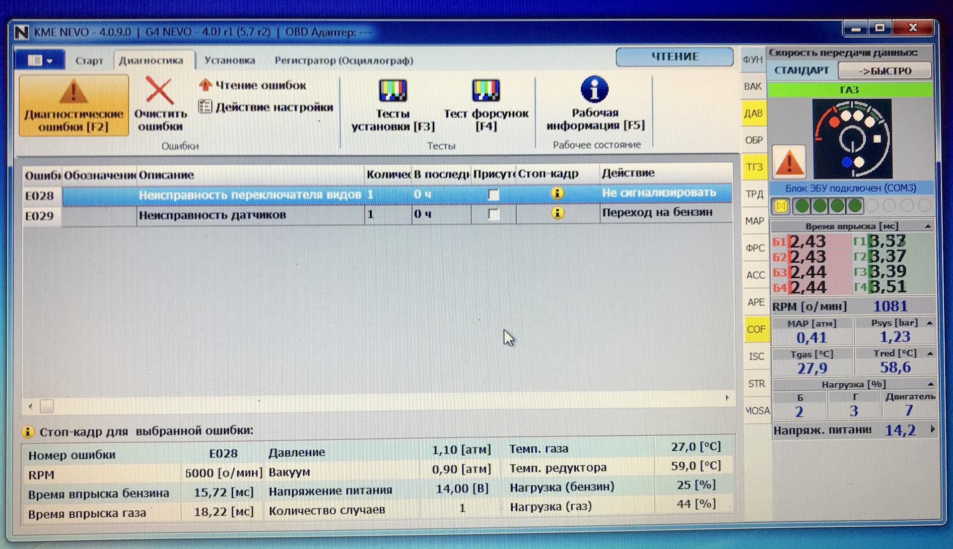 Ошибки ГБО Альфа 4 поколения