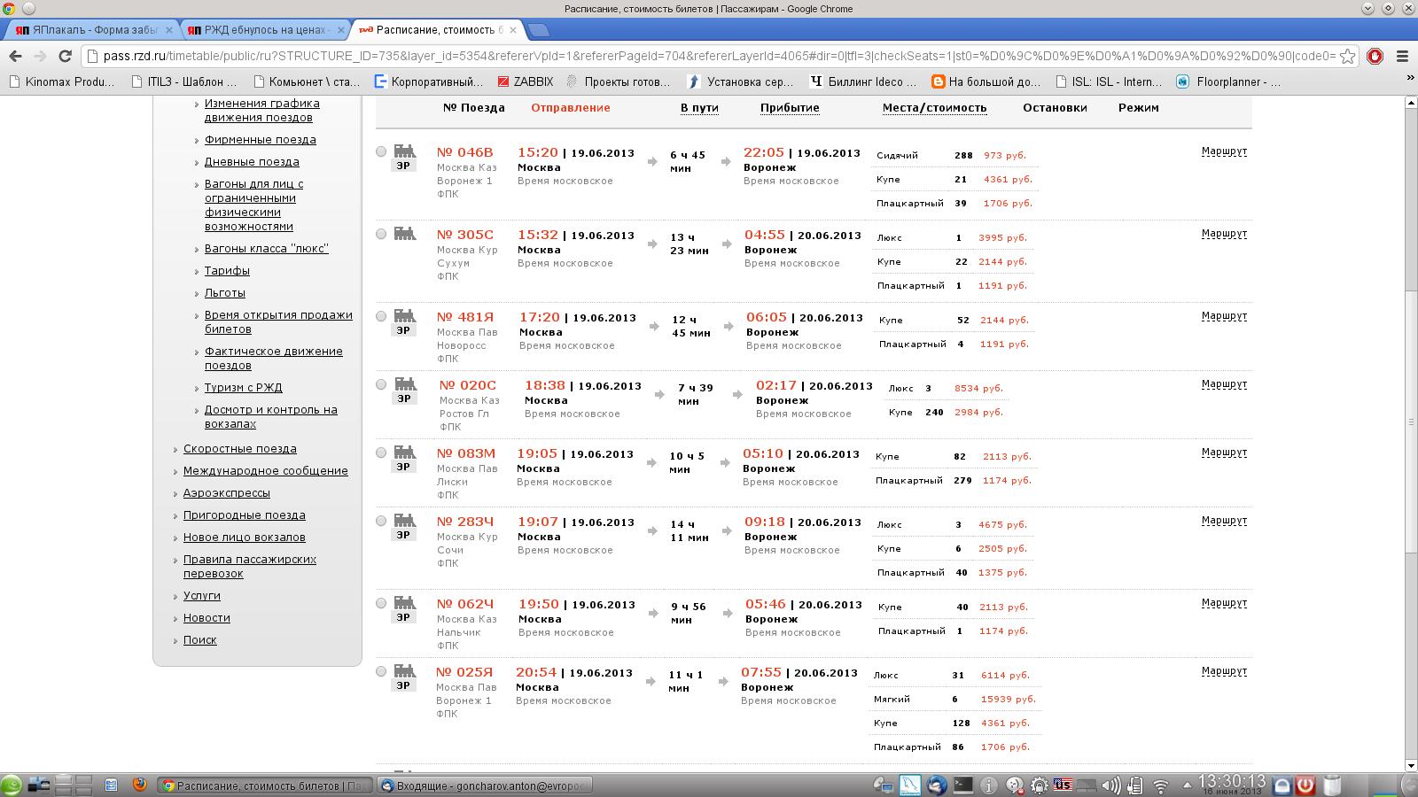 Расписание поездов Воронеж Москва