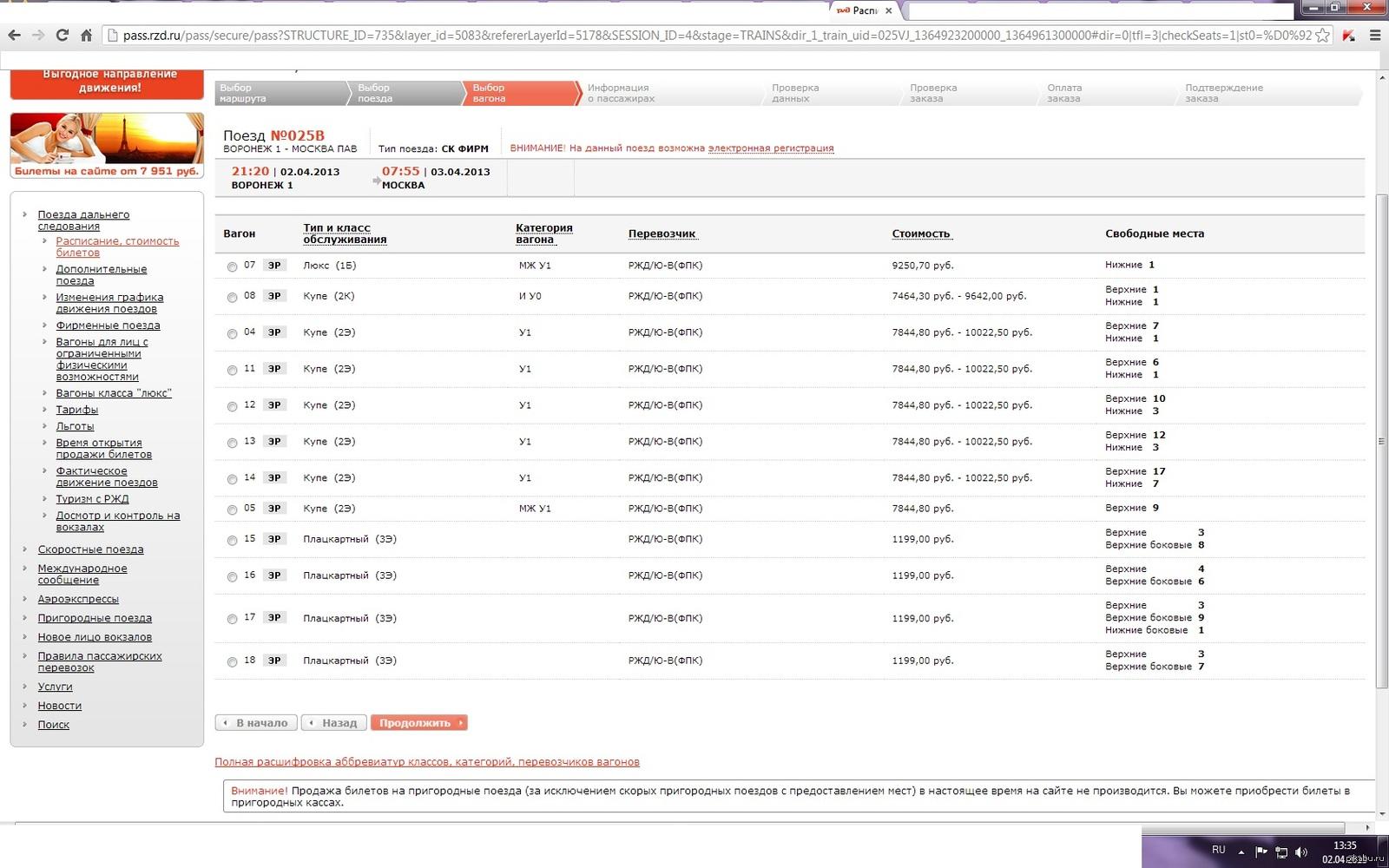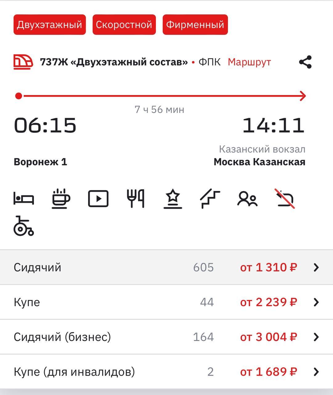 Поезд 738 Москва Воронеж