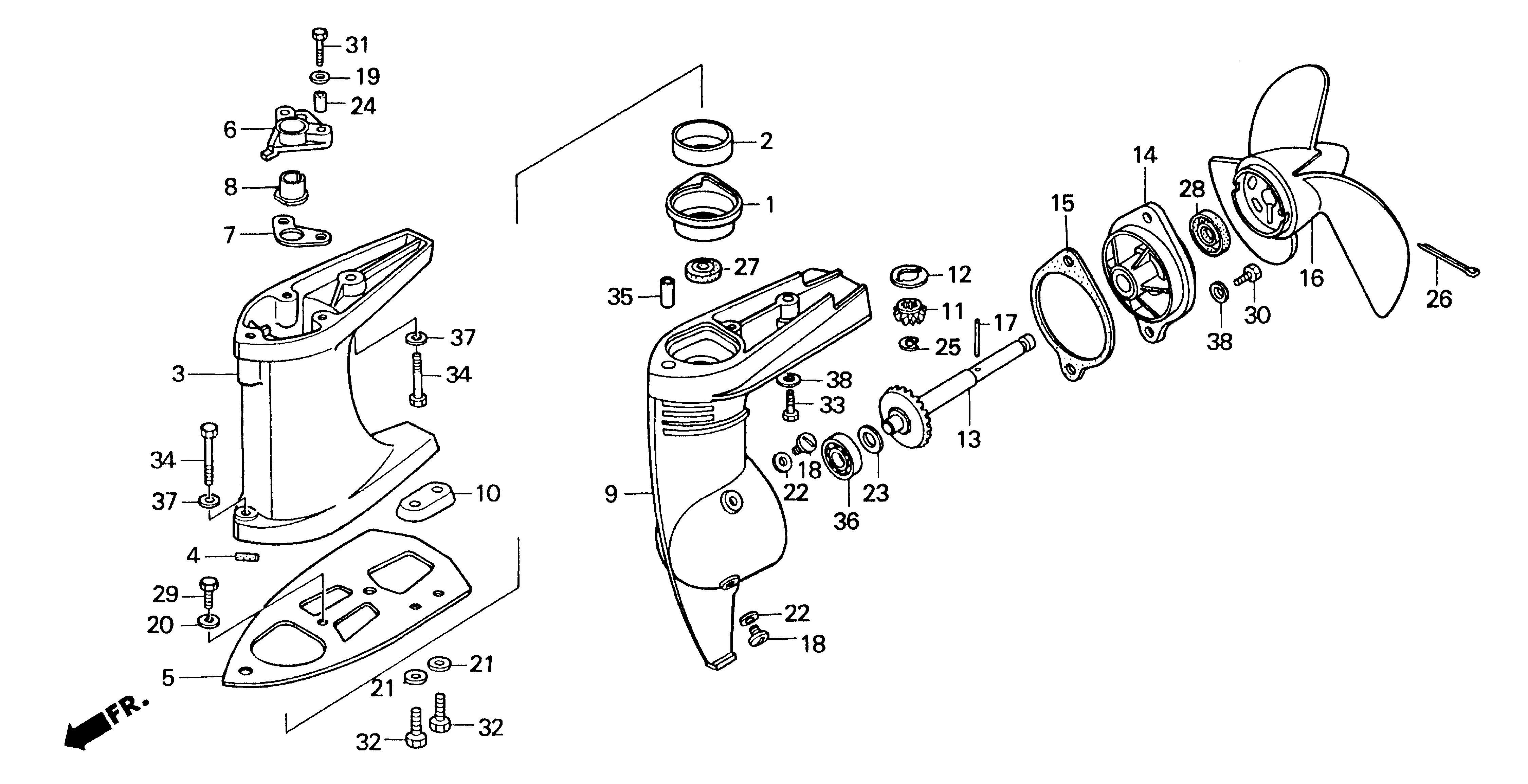 Схема сборки редуктора Honda bf 50