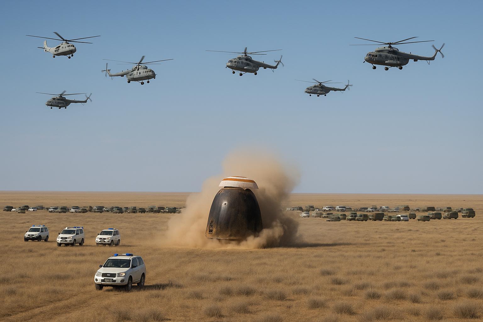 Спускаемый аппарат Союз приземлился