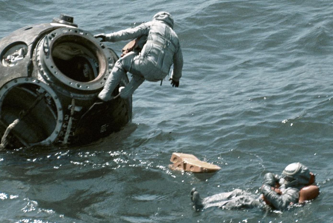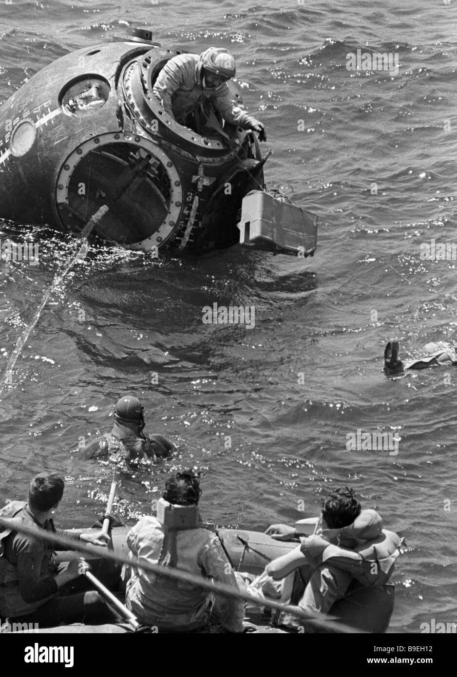Возвращение космонавты в капсуле