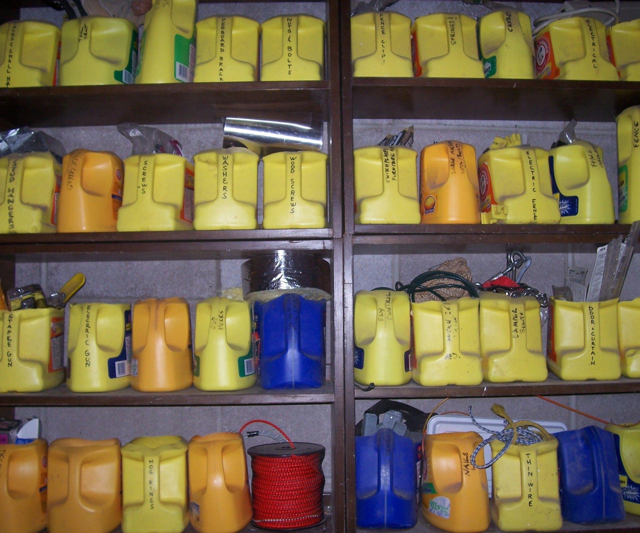 Полки из канистр для гаража