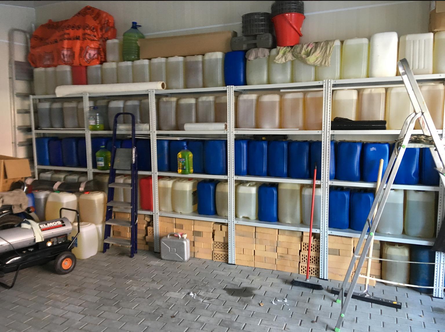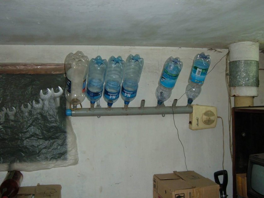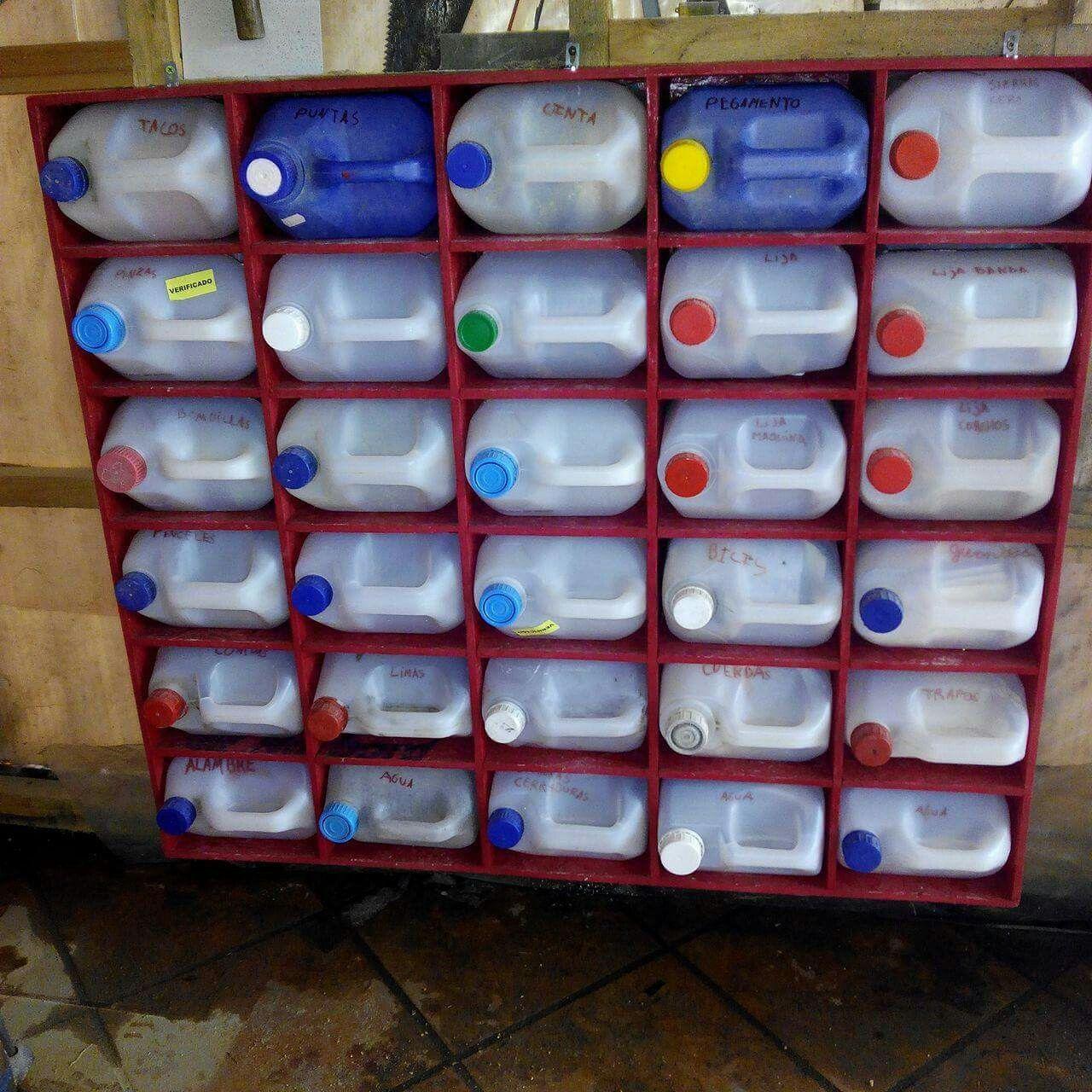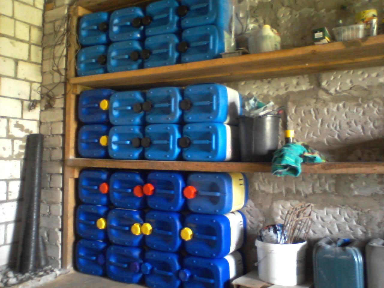 Стеллаж из канистр в гараже
