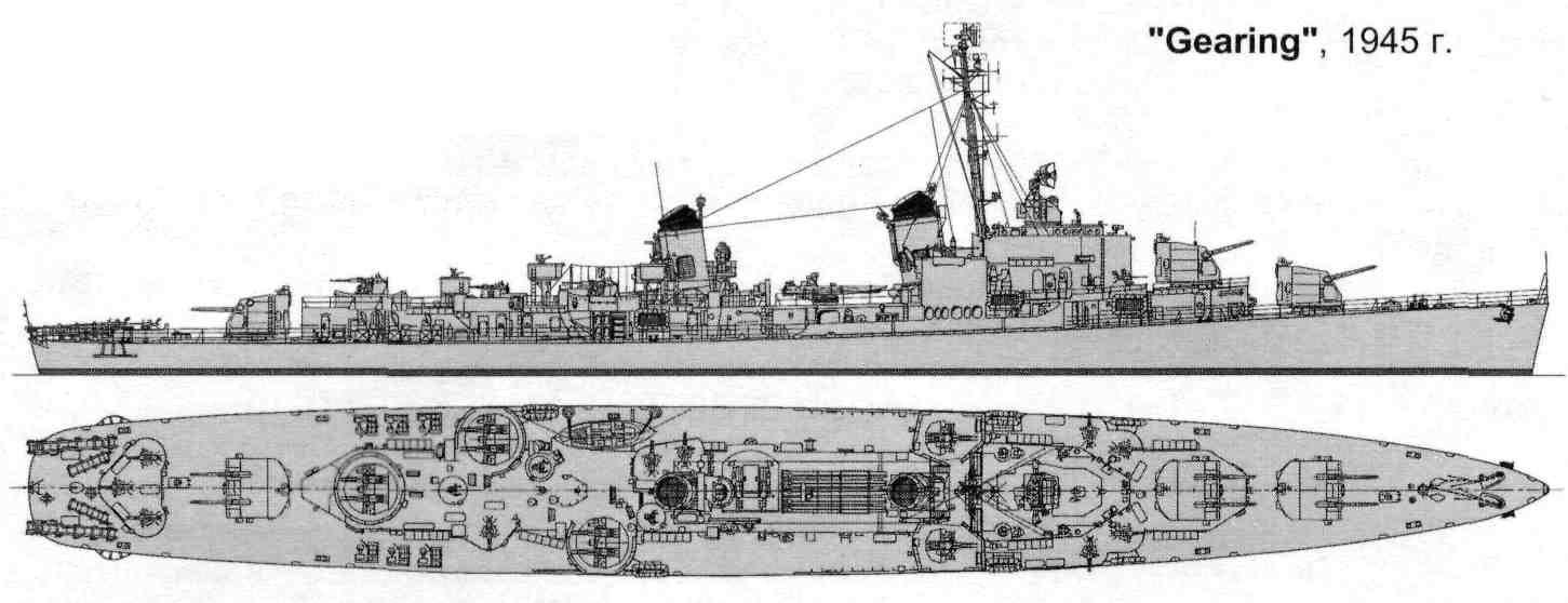 ![Чертежи эсминцев Флетчер и Гиринг]()