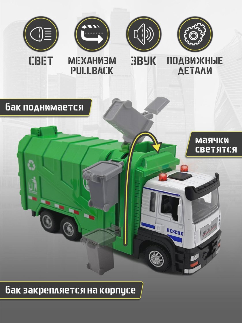 Машина Mobicaro 1:16 мусоровоз инерционная otg0881451