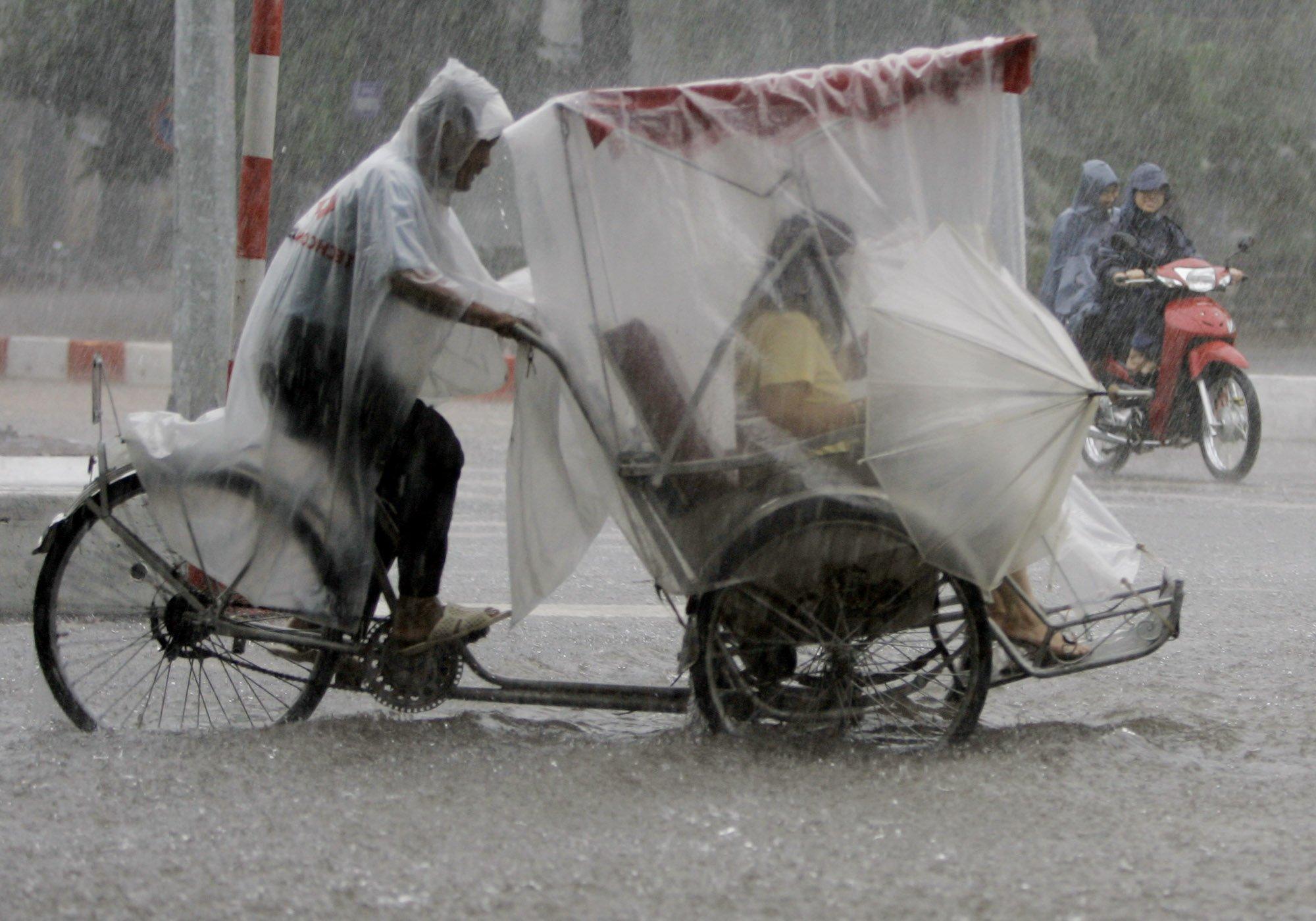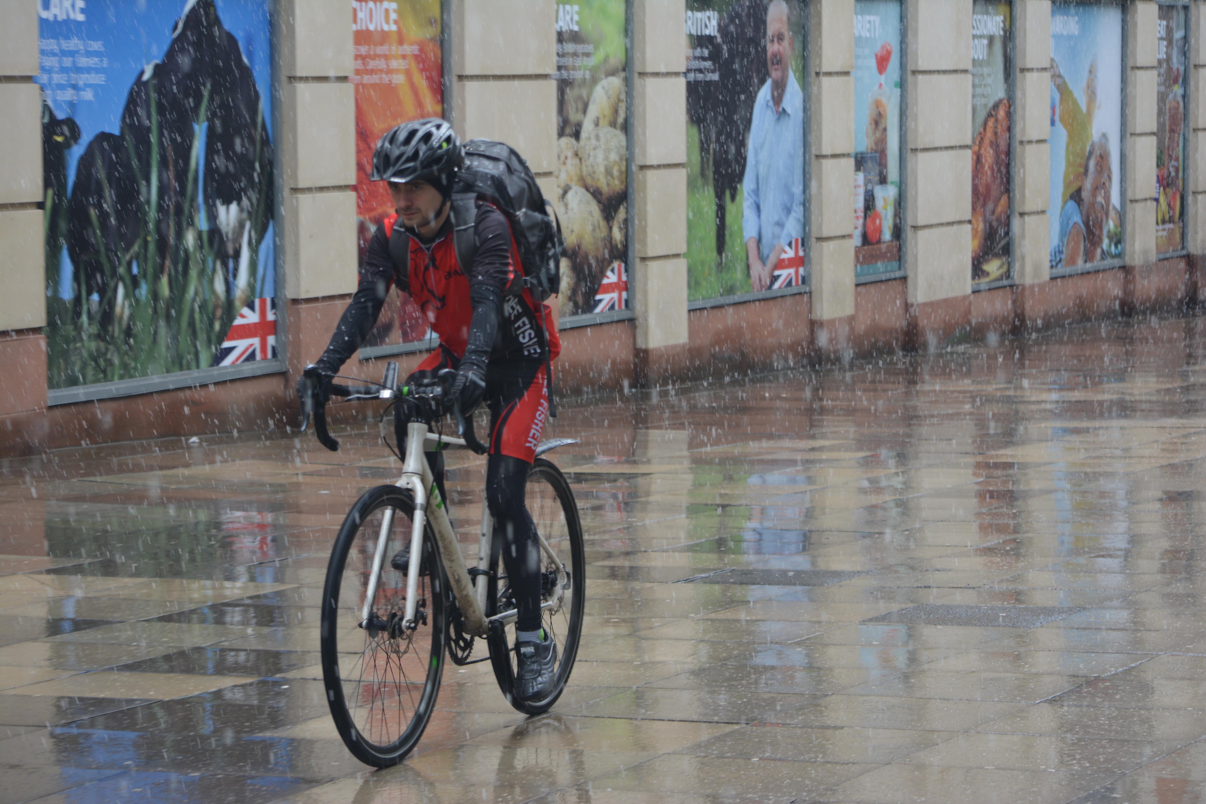 Промокший велосипедист