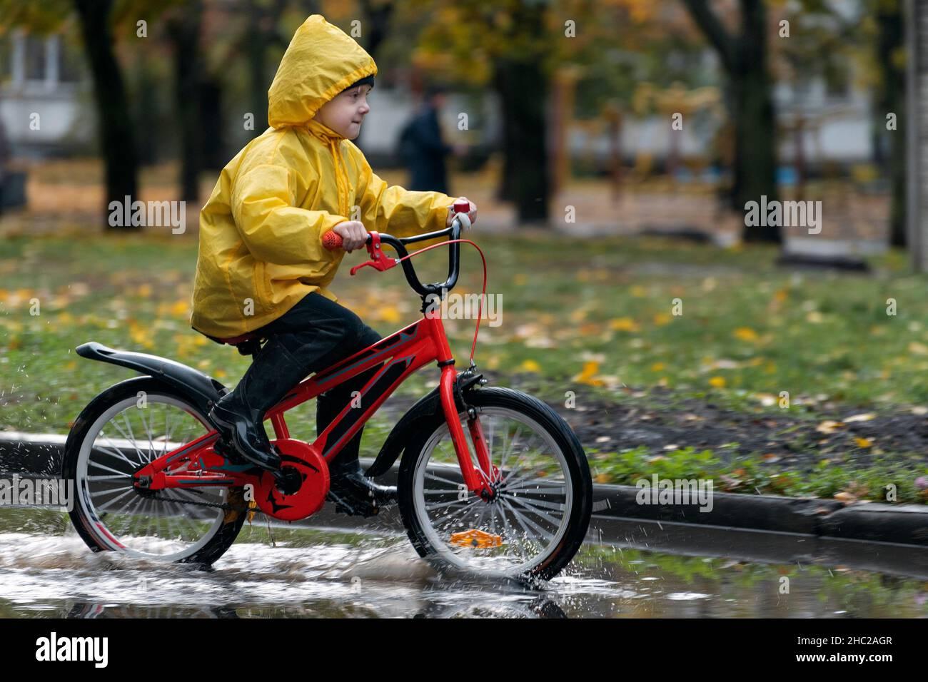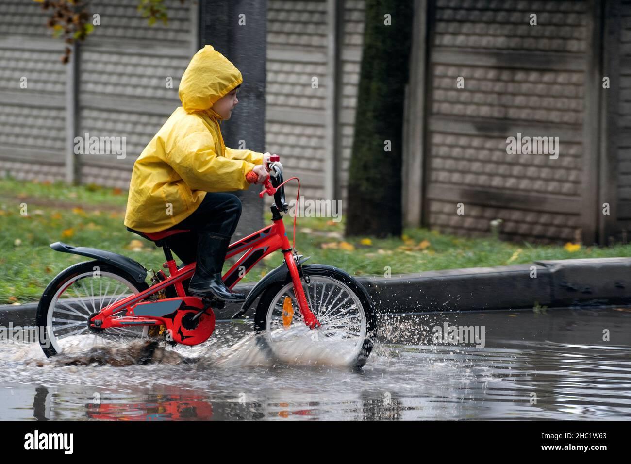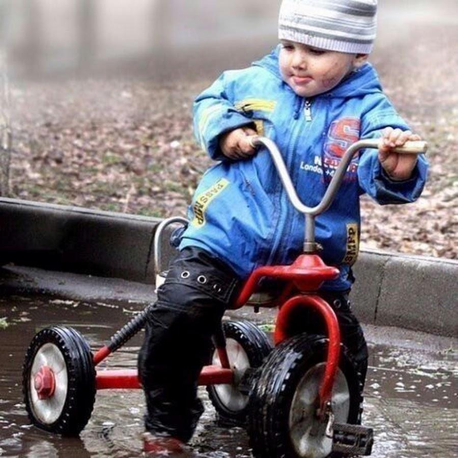 На велосипеде по лужам ребенок