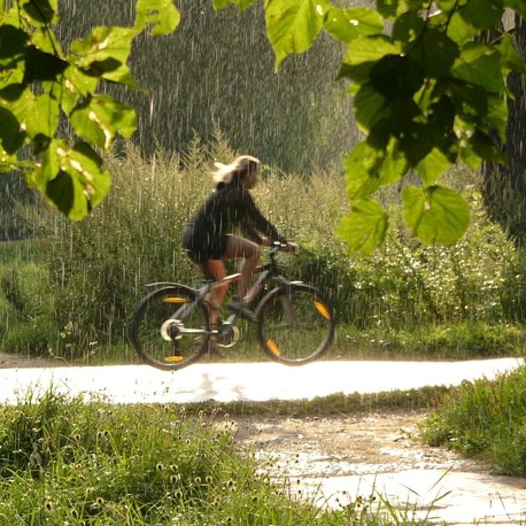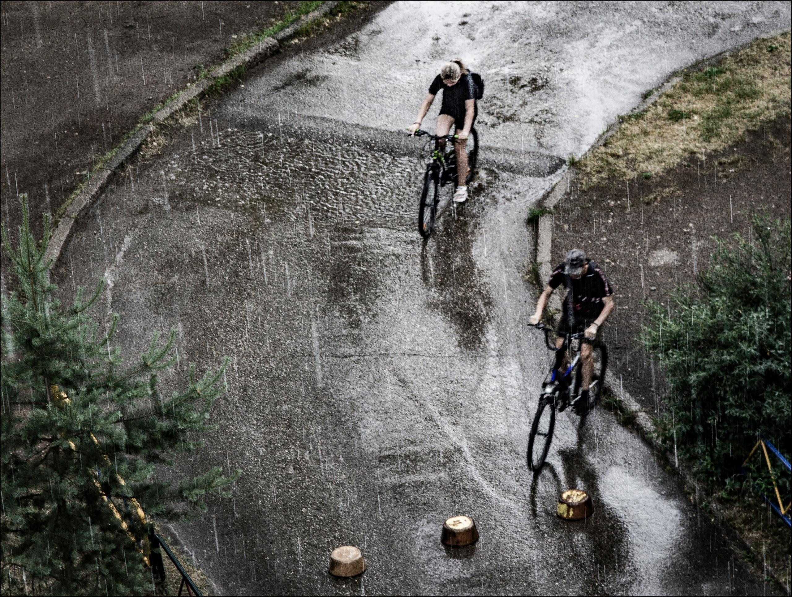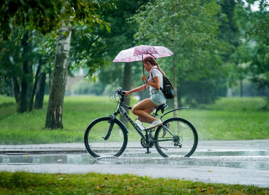 На велосипеде под дождем