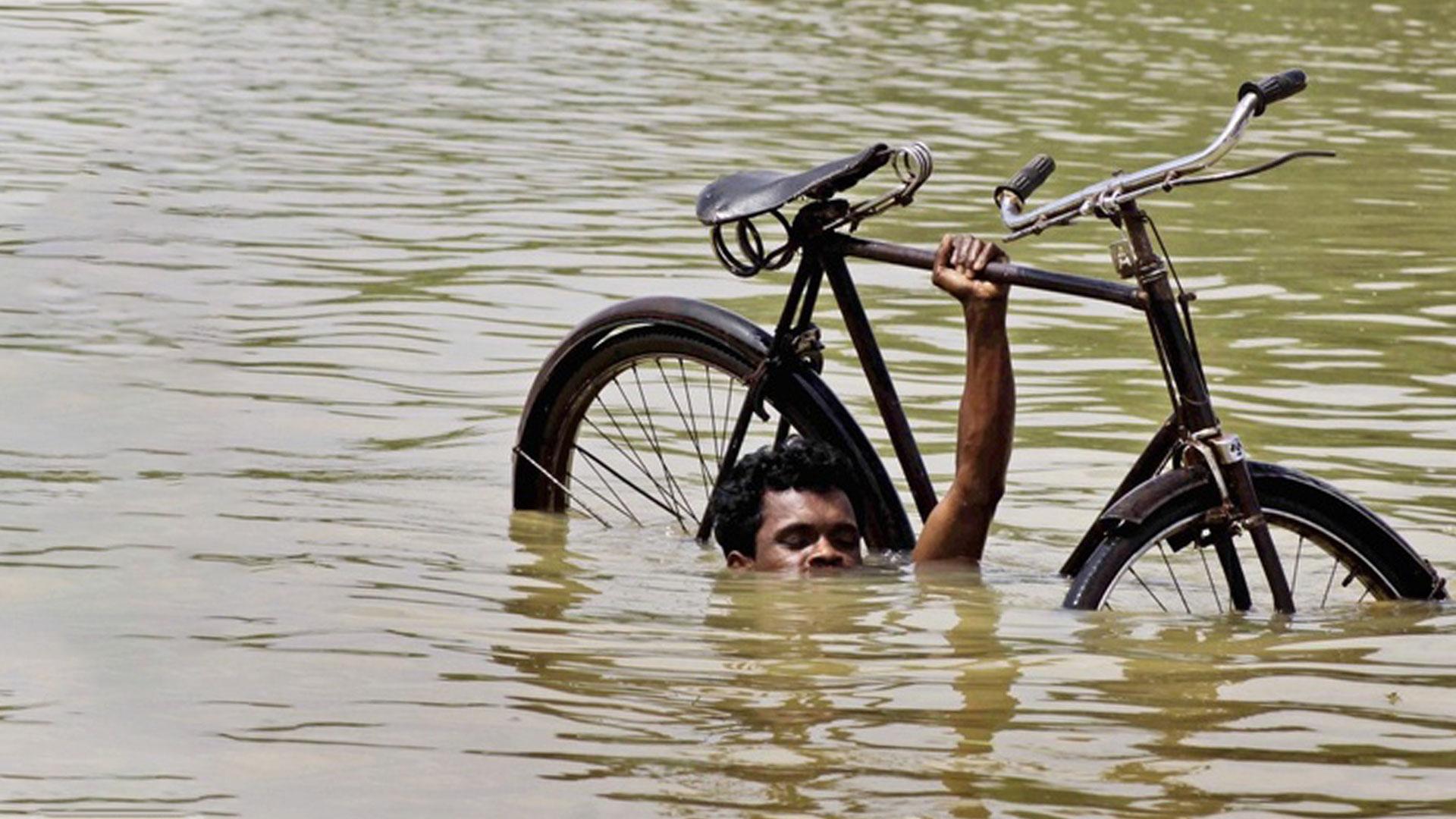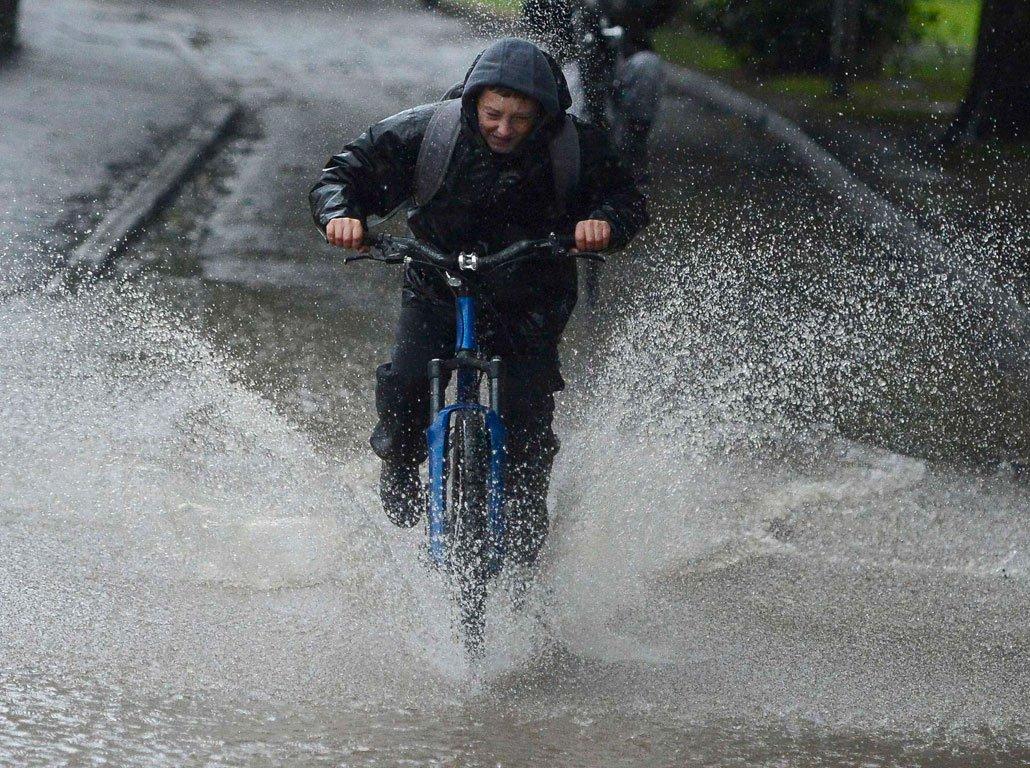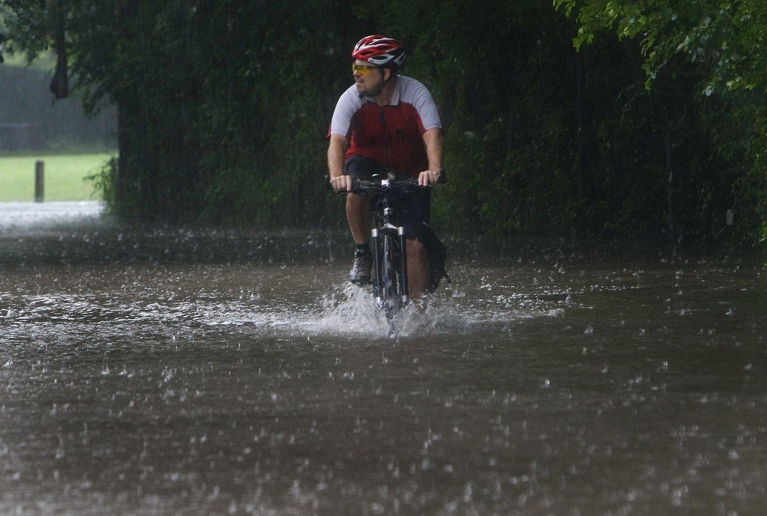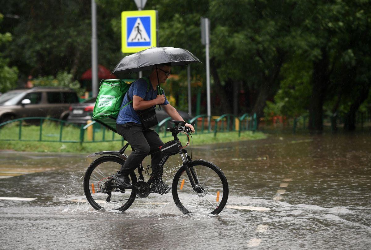 Велосипедист под ливнем